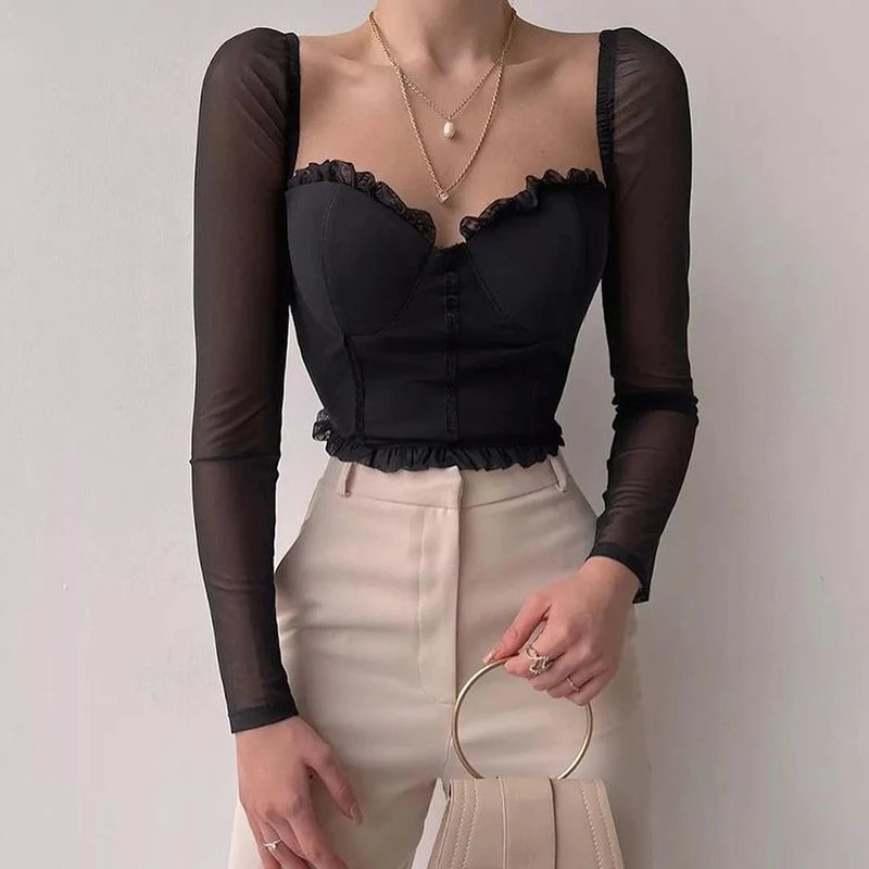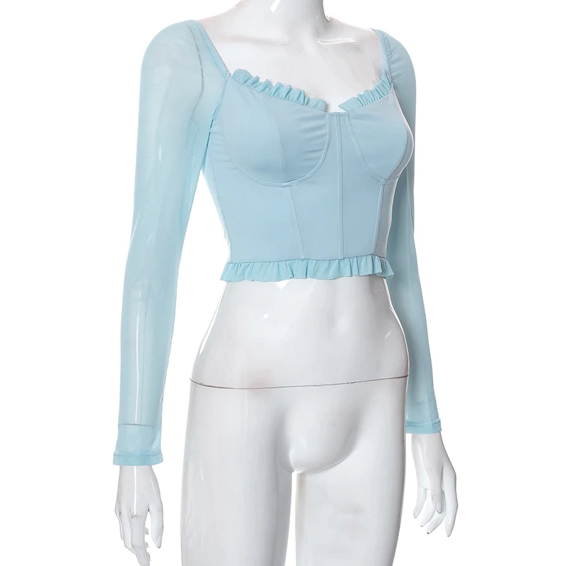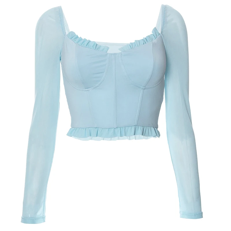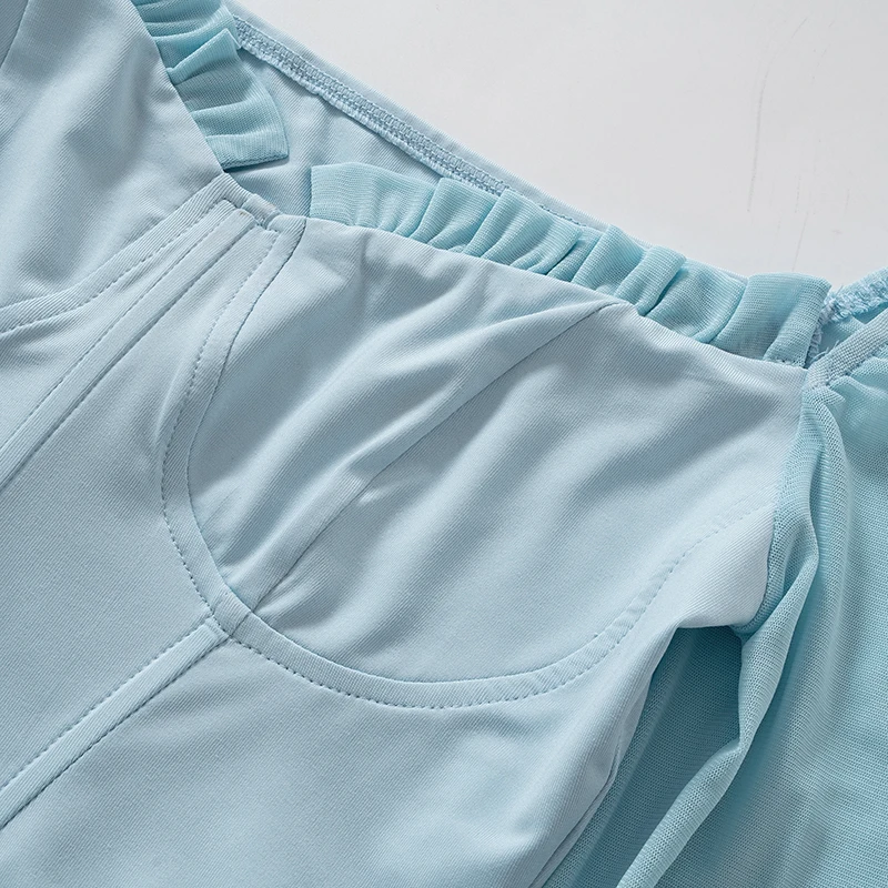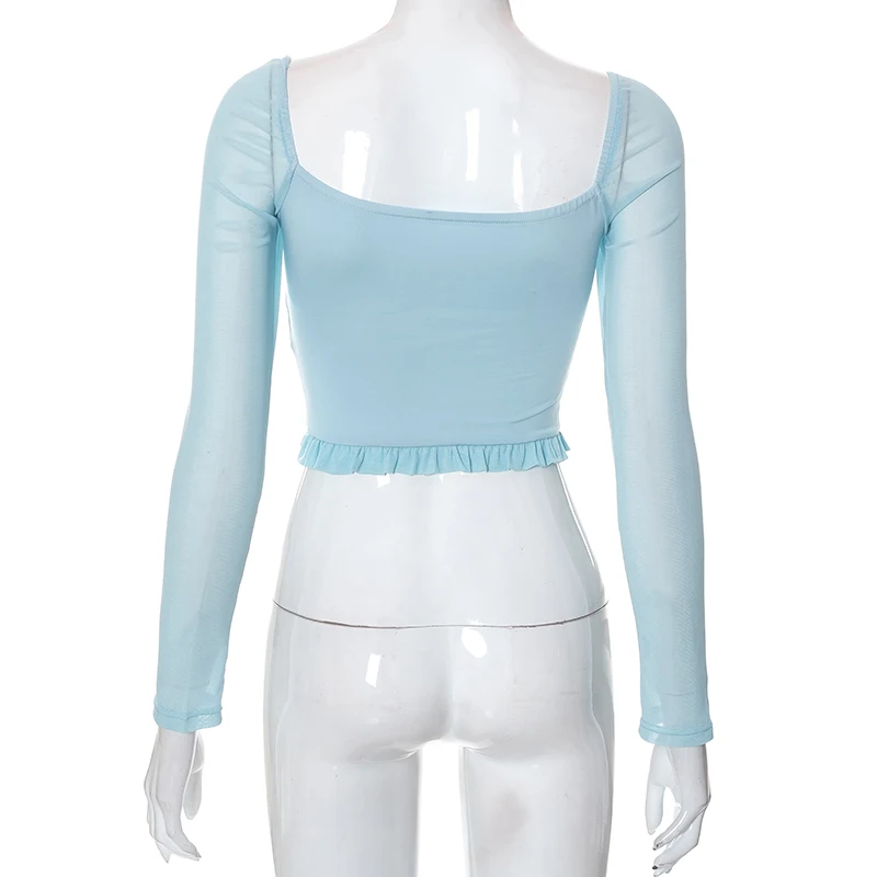 Sandtree Q22TP470 2022 New Arrival Solid Off The Shoulder Crop Top Long Sleeve T Shirts Women