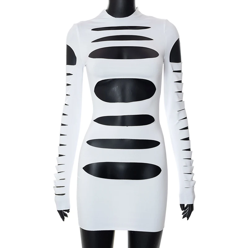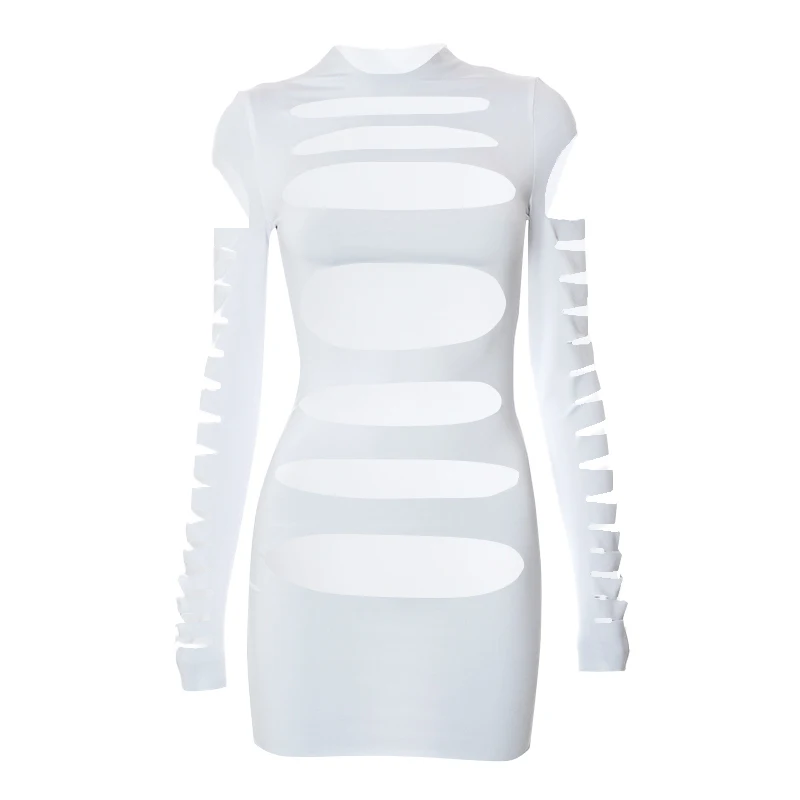 Sandtree R22DS127 2022 New Arrival Long Sleeve Sexy Hollow Bodycon Mini Dress Women Nightclub