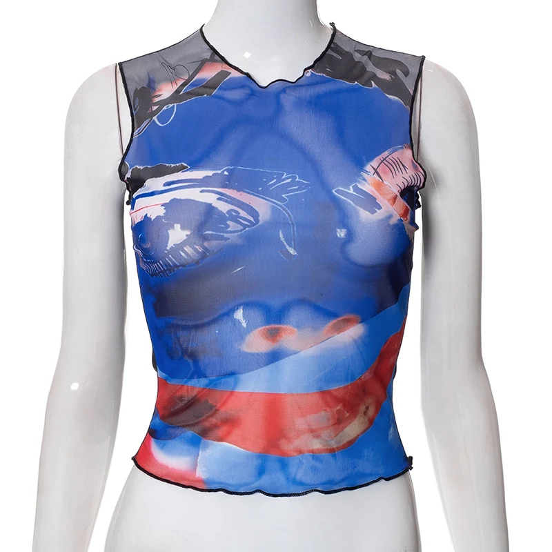 Sandtree X22TP463 2022 Printed Ladies Shirts Latest Design Cute Crop Tops For Girls