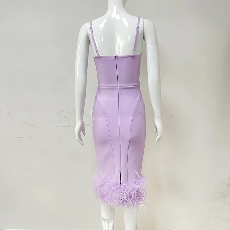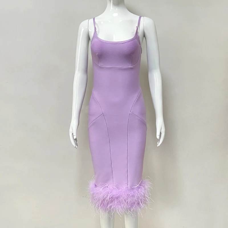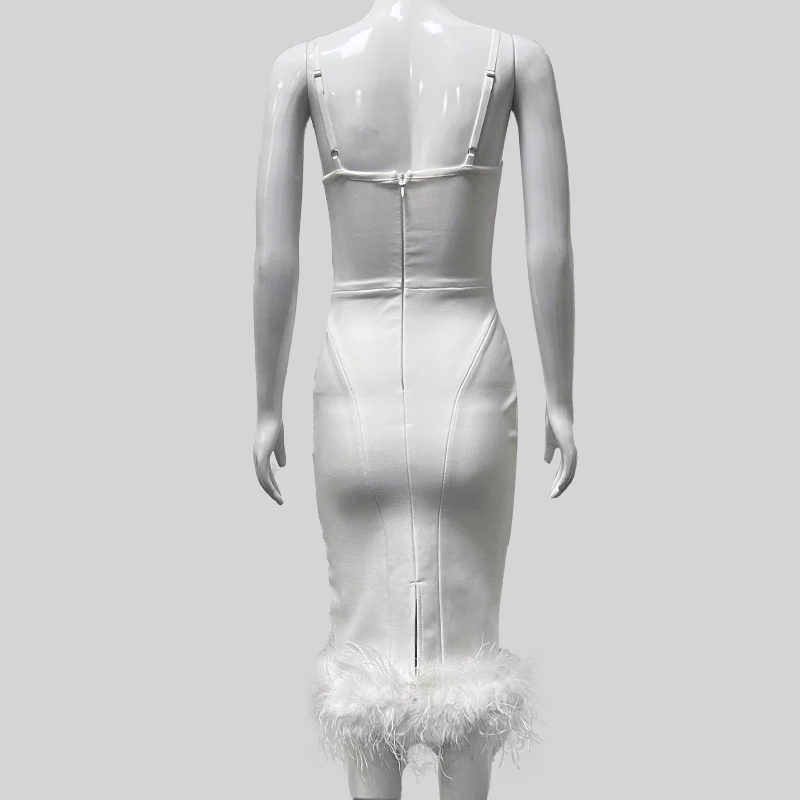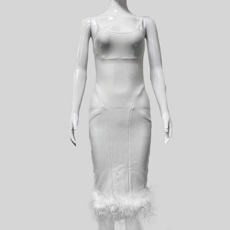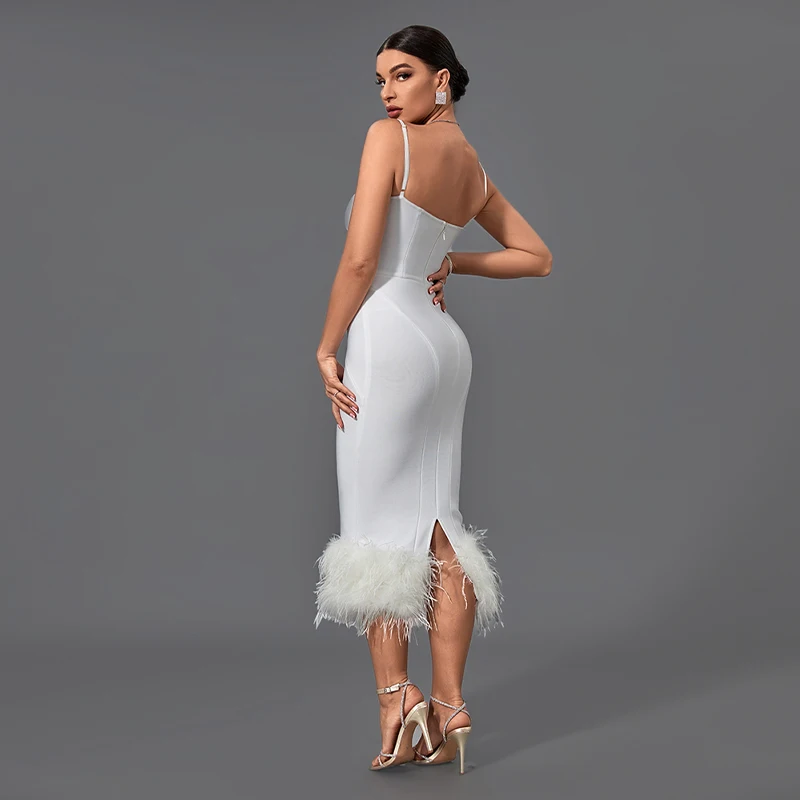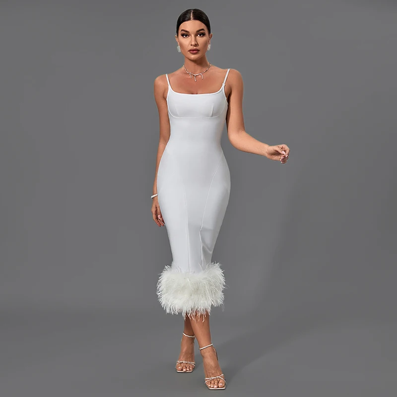SB2354 High Quality Bandage Bodycon Dress Fashion Dresses With Spegetti Strap Luxury Long Feather Dress Elegant