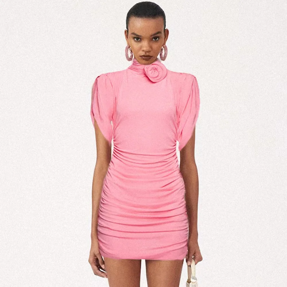 SB2366 Women Clothes Elegant High Neck Mini Dress Summer Elegant Fashion Birthday Club Dresses Bodycon