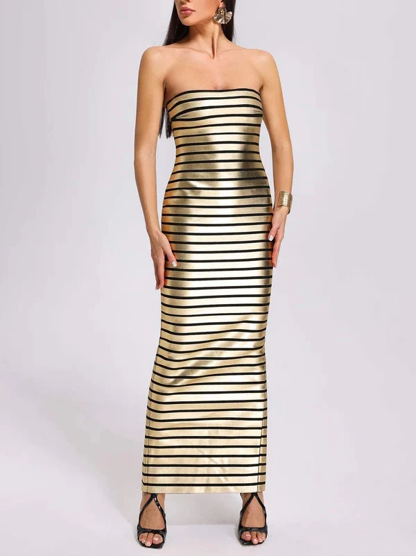 SB2617 Kimshein Summer Sexy Stripe Dresses Women Party Evening Elegant Off Shoulder Bodycon Maxi Dress