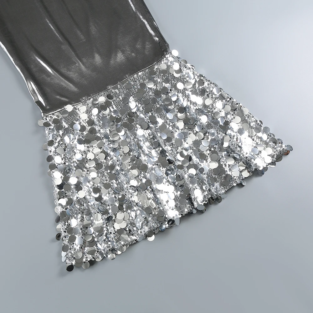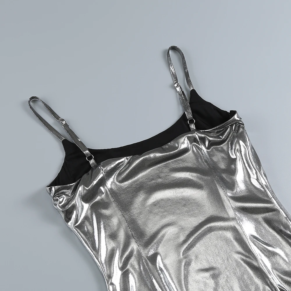 SB2684 Pu Leather Outfits For Women Spaghetti Strap Bodycon Party Wear Sexy Sequin Maxi Dress Elegant