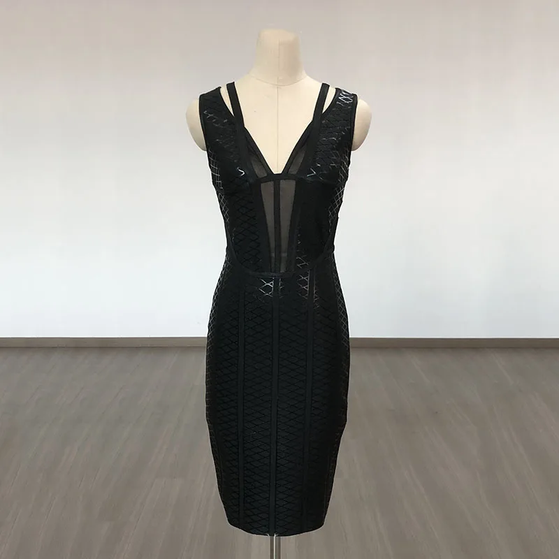 SB2696 Kimshein Summer Sexy Mesh See Through Women Fitness Tank Dress Elegant Knee Lengeh Bodycon Dress