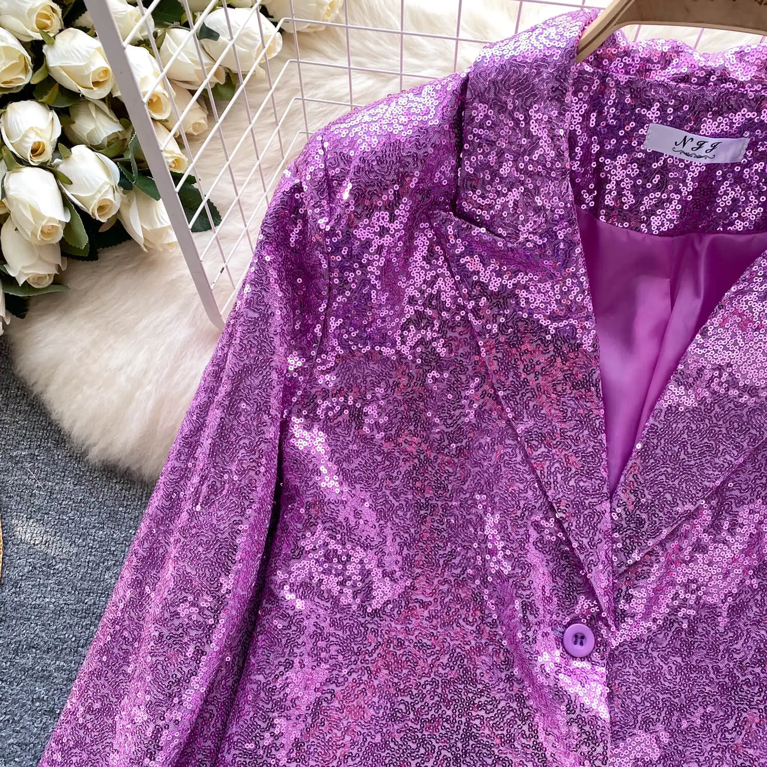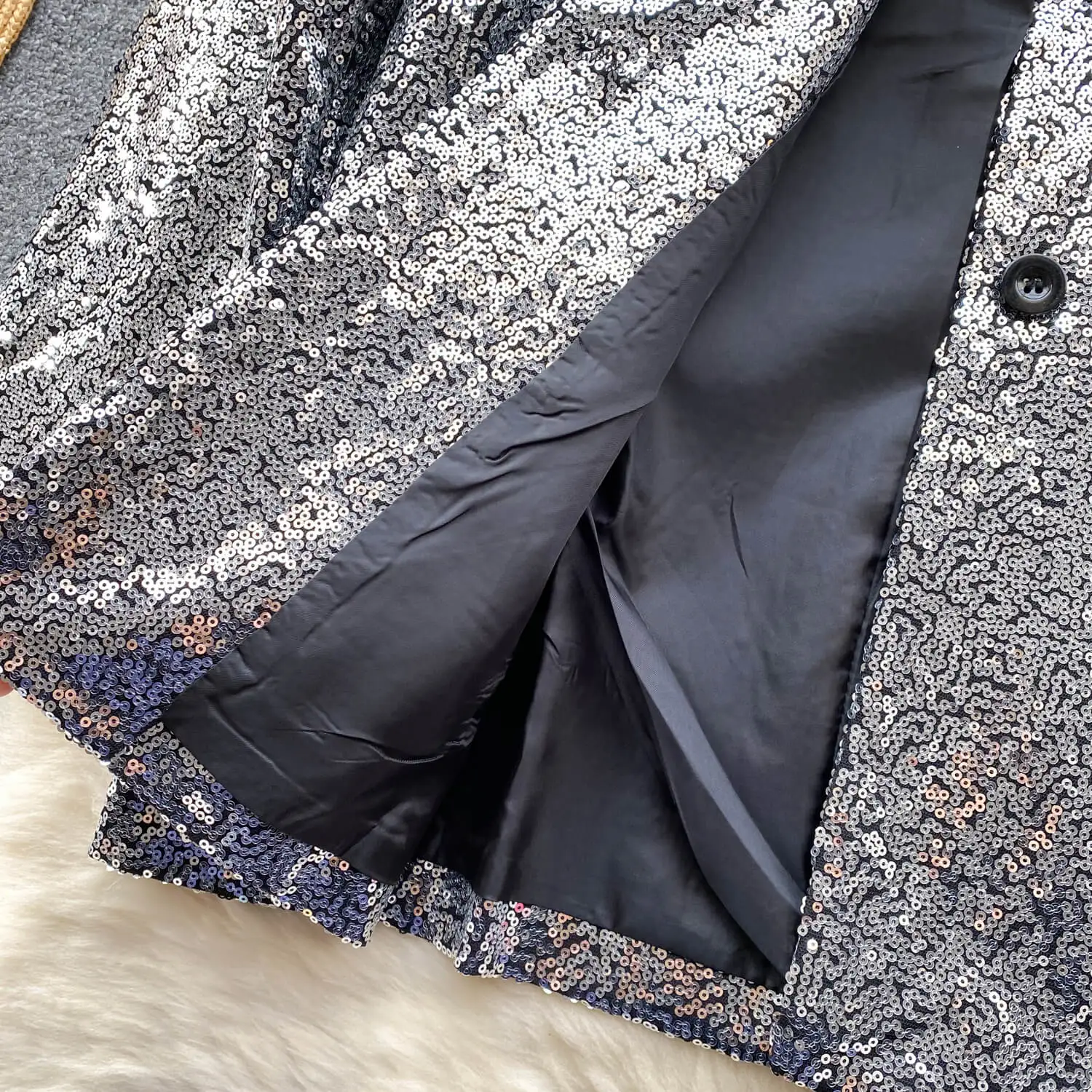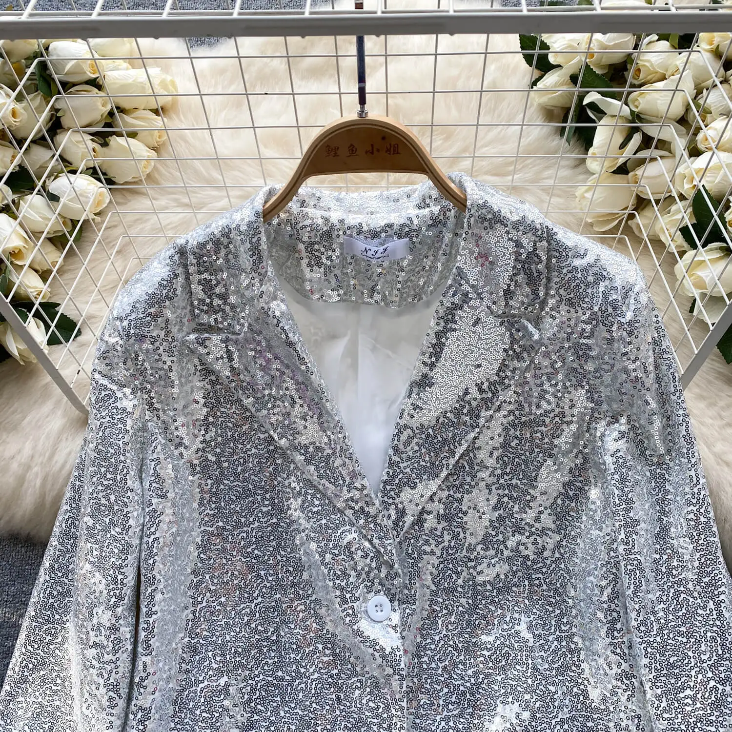 Sequin suit jacket autumn and winter new loose and versatile age reducing cardigan top Glitter Shiny Party Outwear For Women