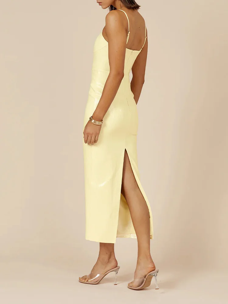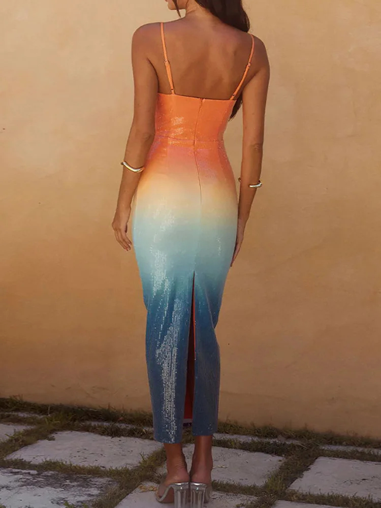 Sequined Patchwork Sleeveless Pencil Dress, Women Summer Gradient V Neck Fashion Party Dress, 2024 Backless Simple Ladies Dress