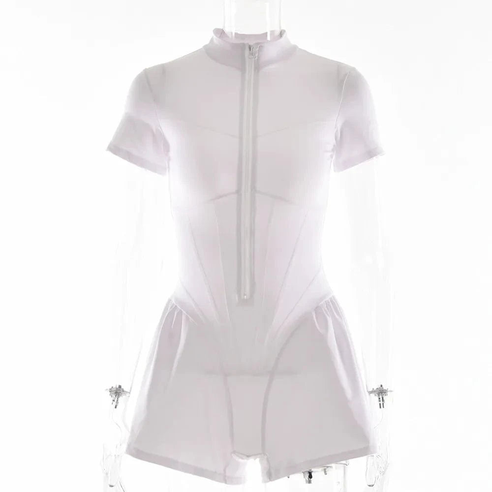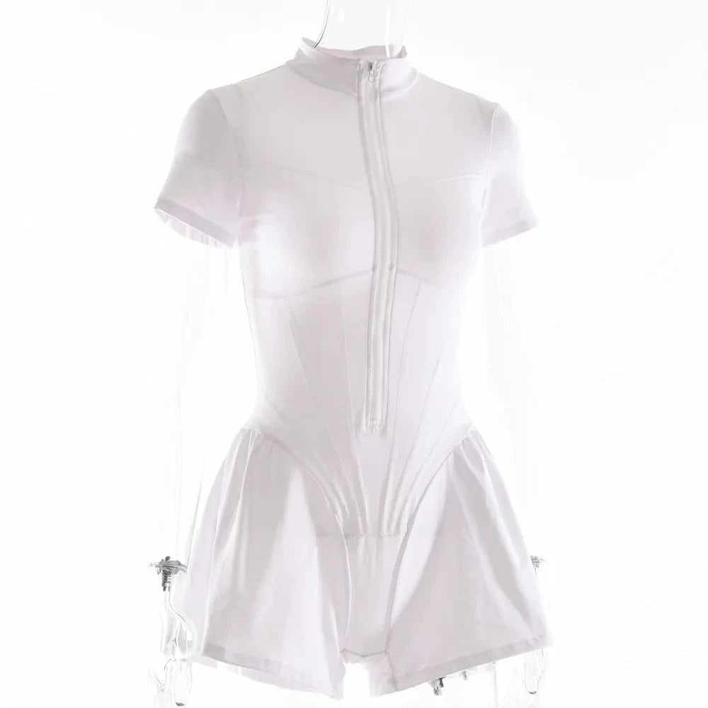 Sexy Bodycon Playsuit Women Jumpsuit O Neck Short Sleeve Zipper Bodysuit Female Elegant Slim Playsuits Rompers Sport Clothes