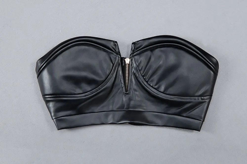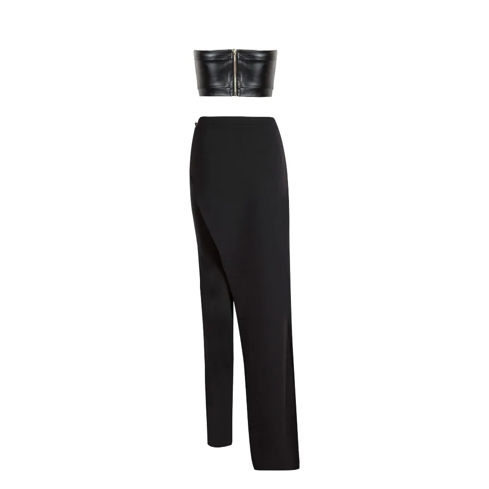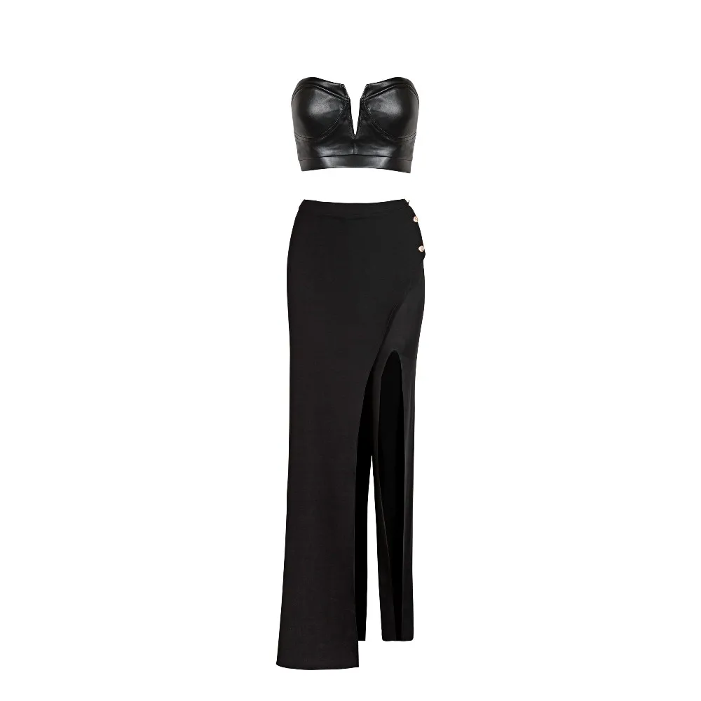 Sexy Bodycon Two Piece Top Leather Bottom Bandage Prom Bandage Dress