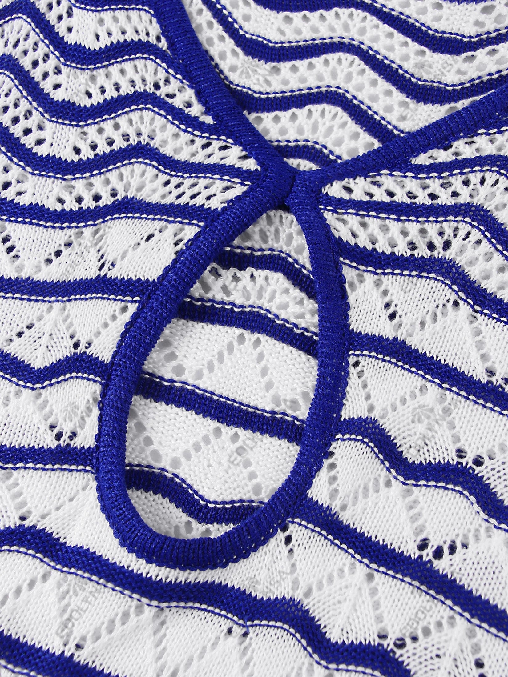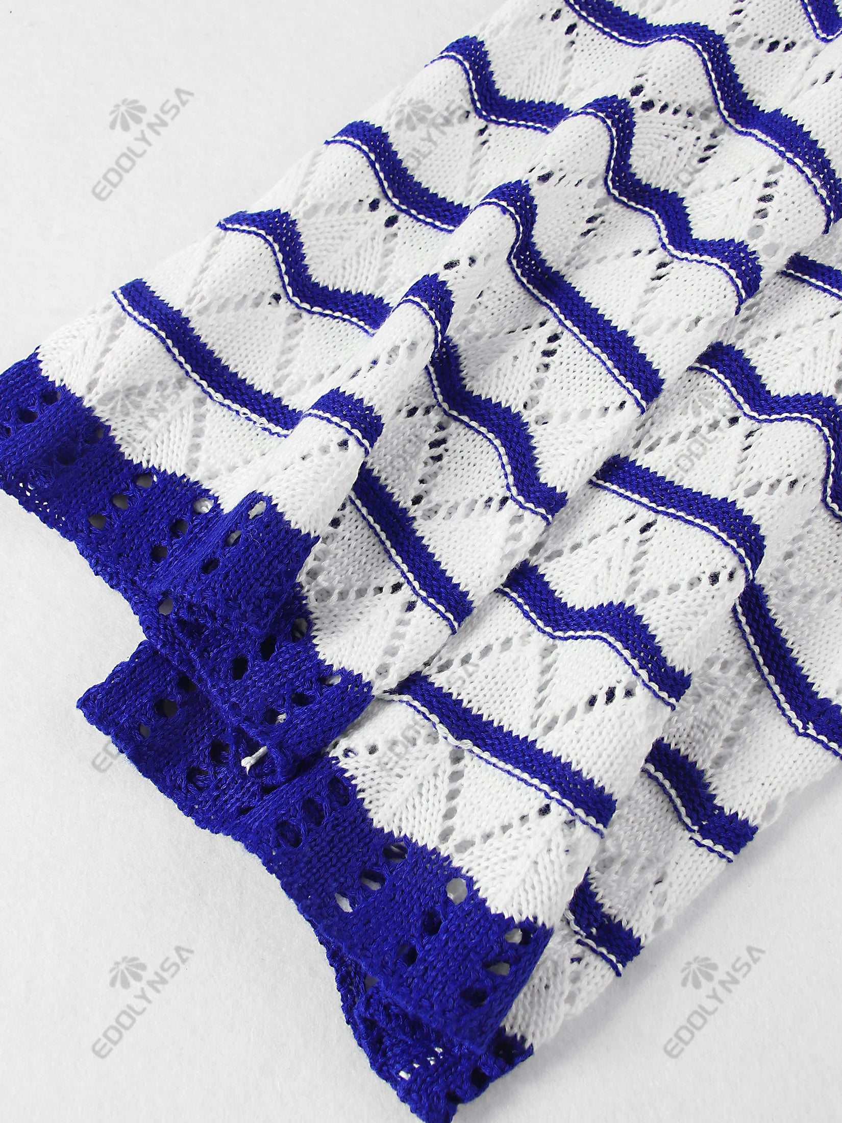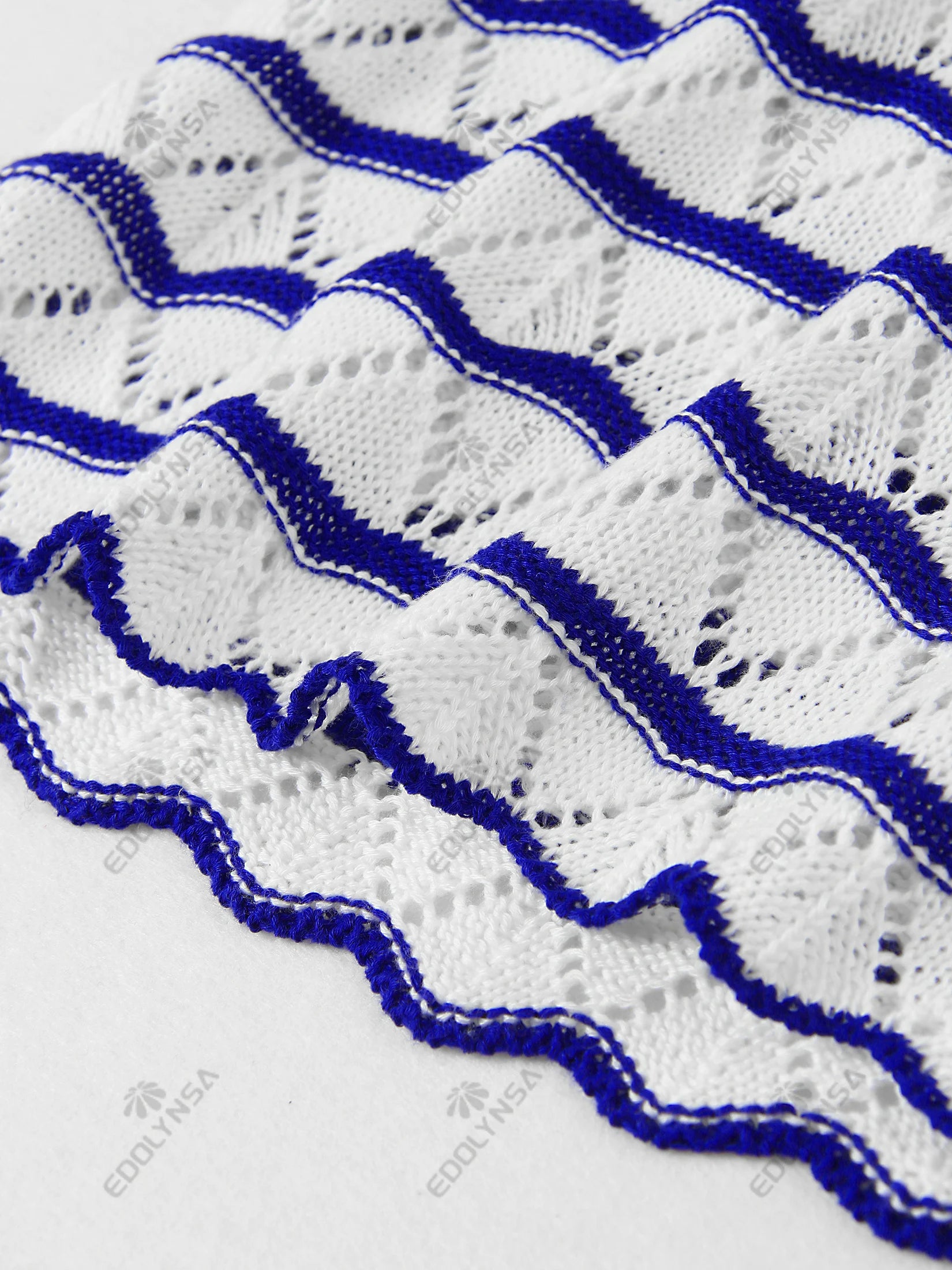Sexy Boho Striped Chic V-neck Cut Out Bell Sleeve Knit Beach Mini Dress 2025 Summer Women Seaside Holiday Swimsuit Cover Up K123