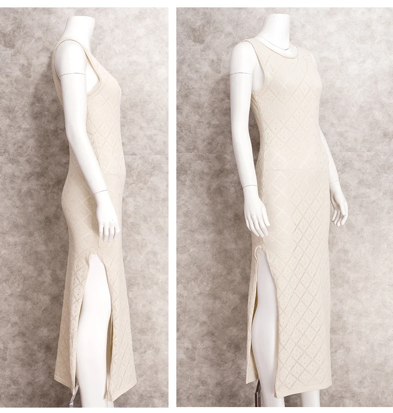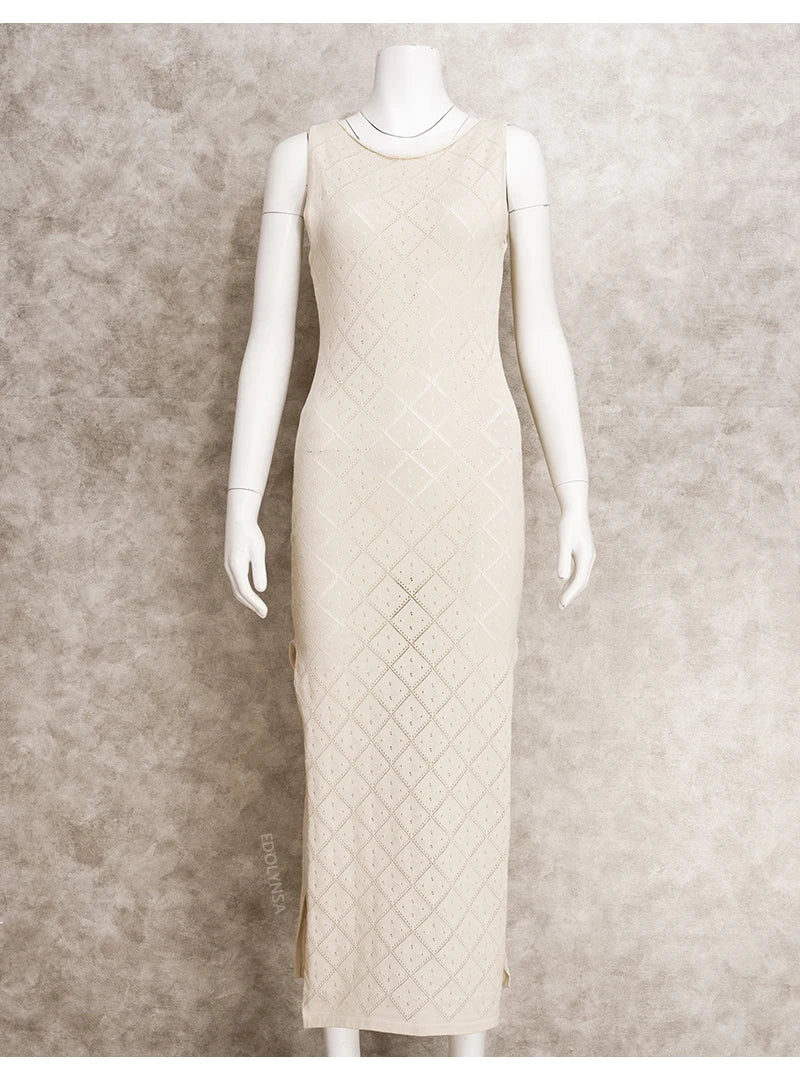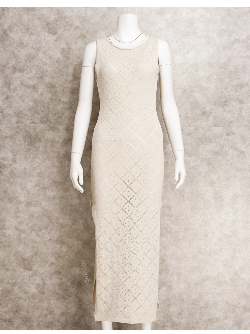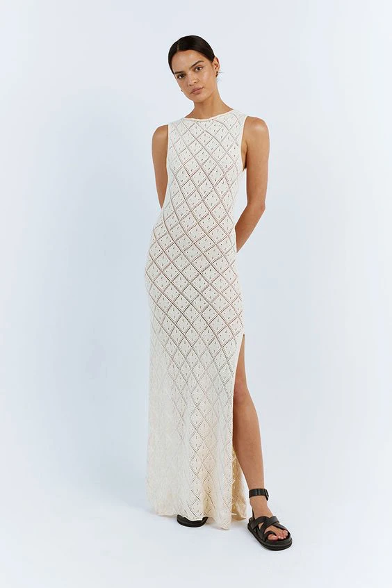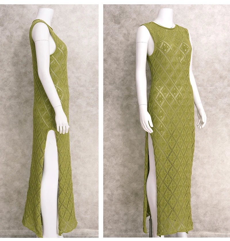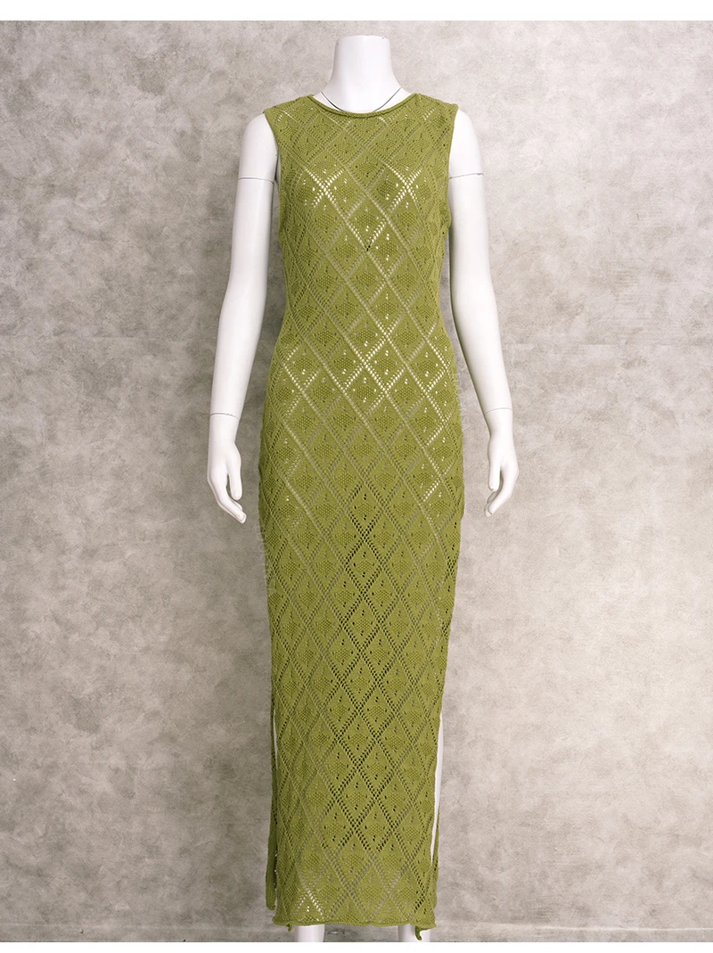 Sexy Cut Out Slit Knit Mesh Swimsuit Cover Up Pareo Tunic 2025 Summer Beach Maxi Dress Bikini Cover-ups Women Beachwear A2318
