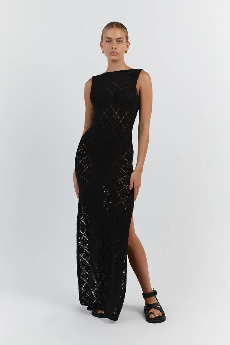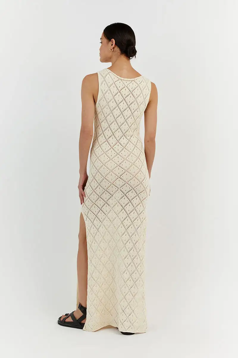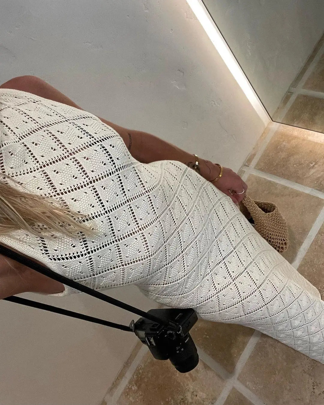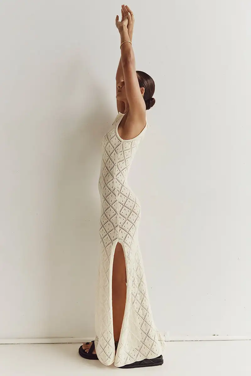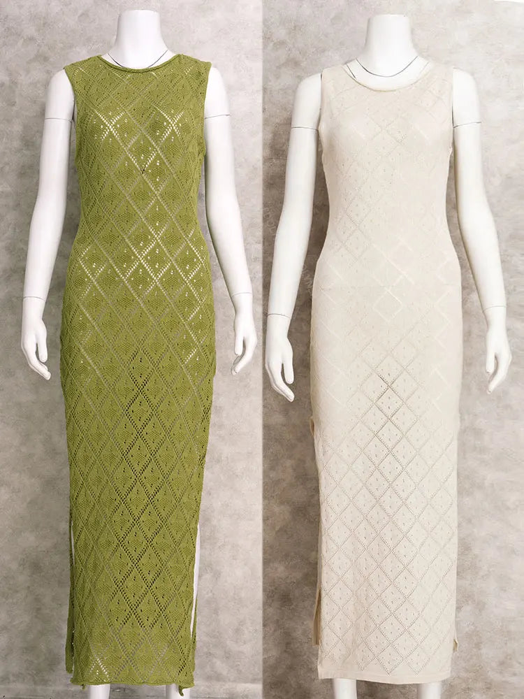 Sexy Cut Out Slit Knit Mesh Swimsuit Cover Up Pareo Tunic 2025 Summer Beach Maxi Dress Bikini Cover-ups Women Beachwear A2318