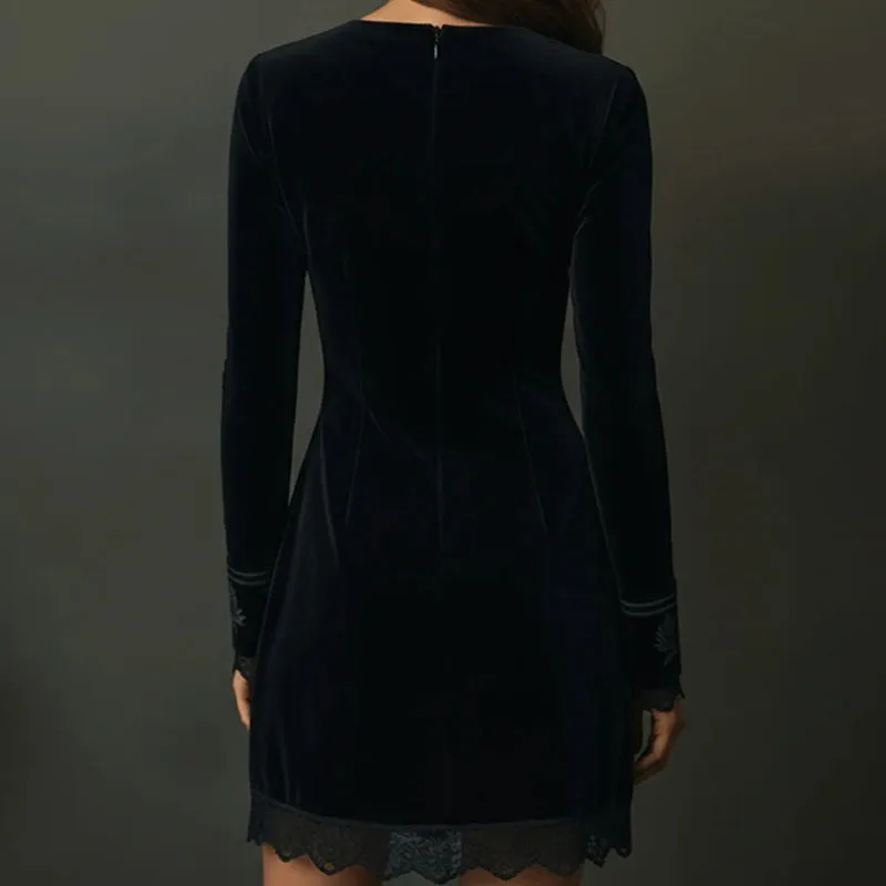 Sexy Deep V Neck Hollow Slim Mini Dress Woman Floral Print Patchwork Lace Party Dress Autumn New Long Sleeve Back Zip Boho Dress