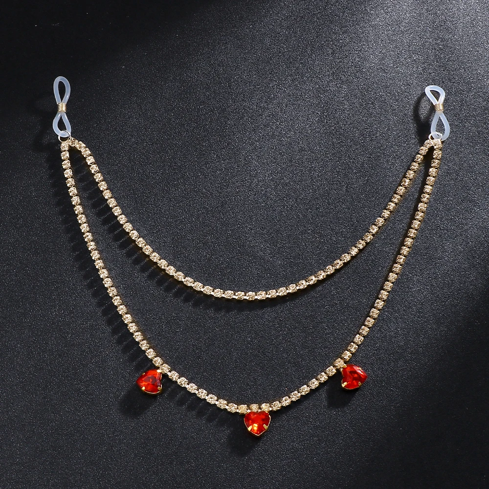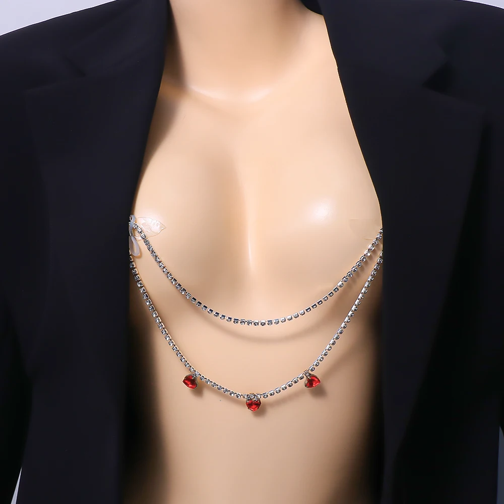 Sexy Double Layer Red Heart Rhinestone Body Chain Jewelry For Women Nightclub Party Crystal Bra Chest Chain Wholesale