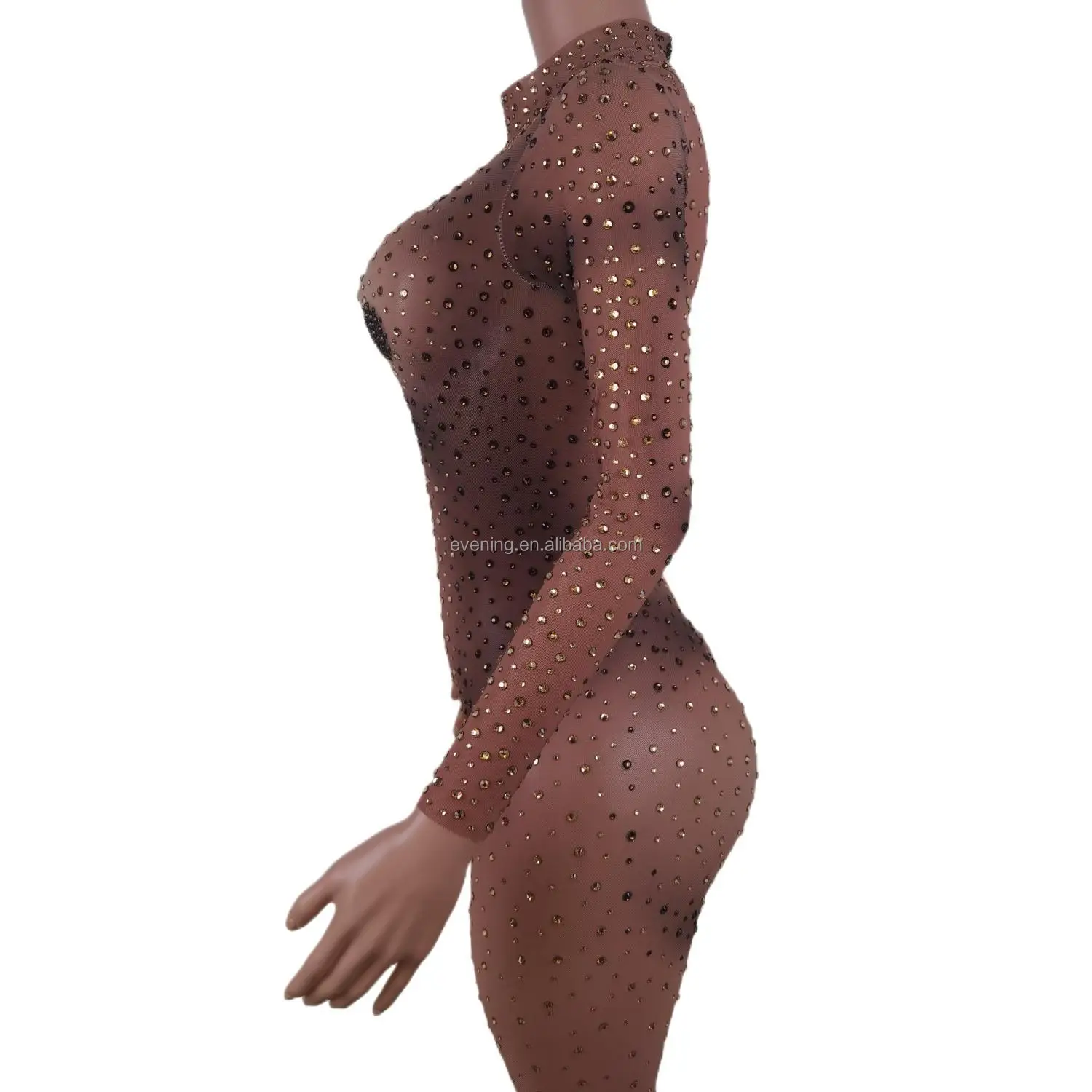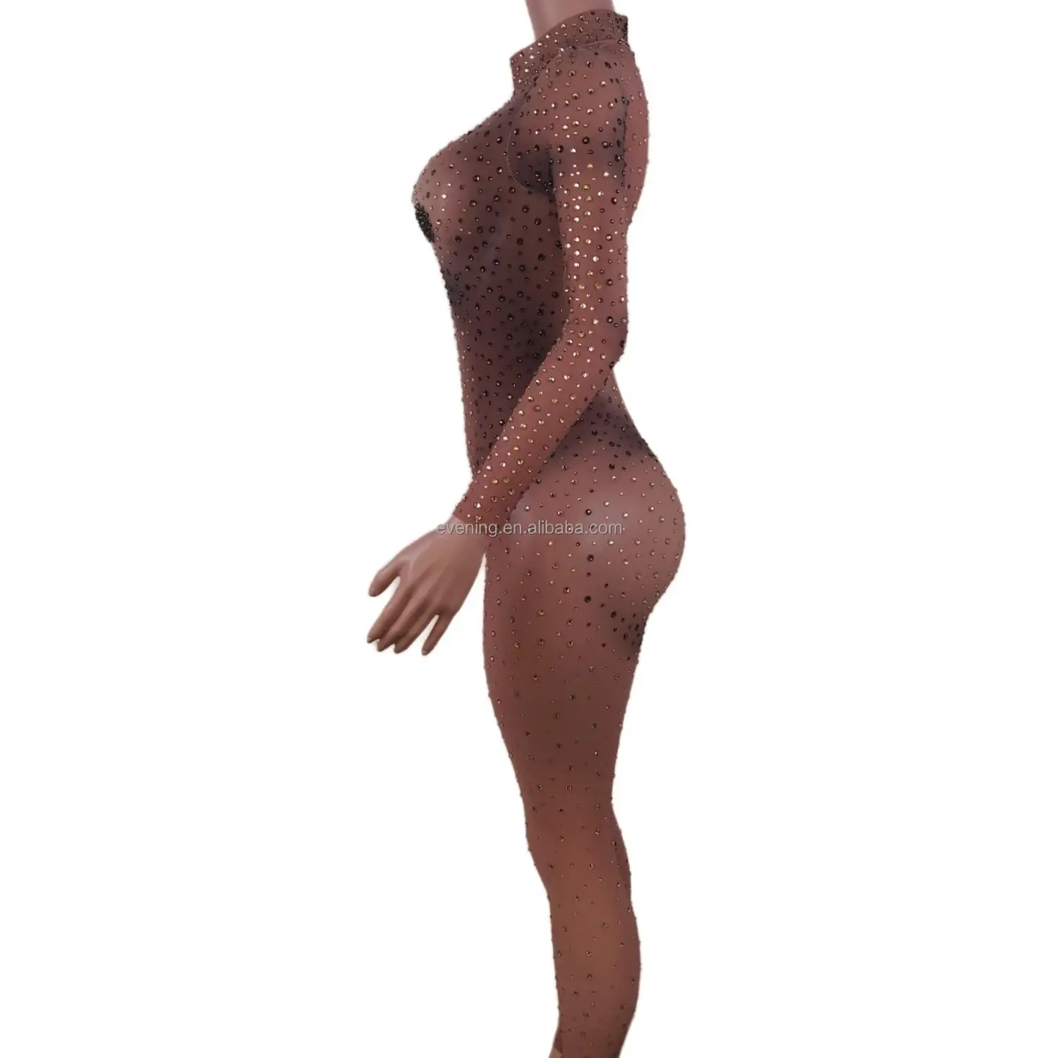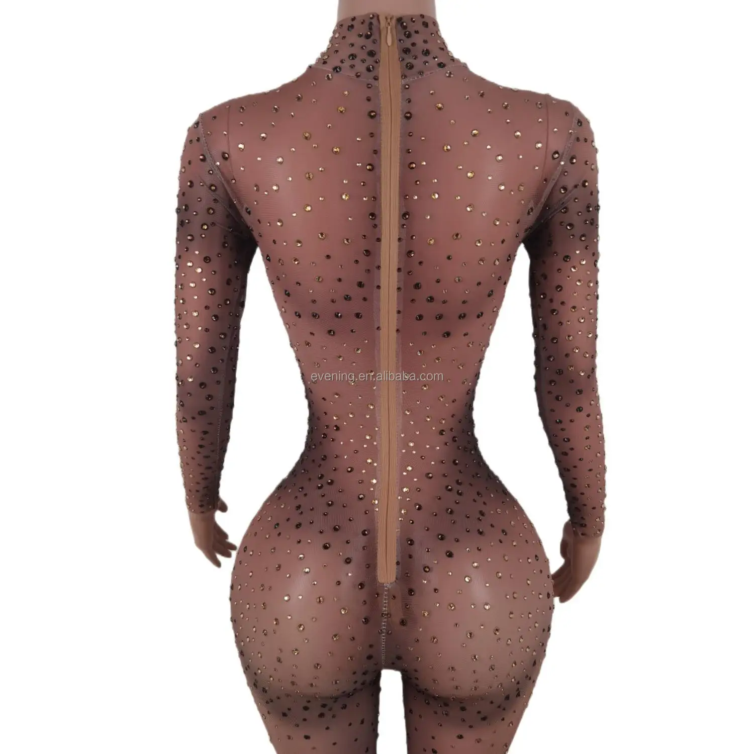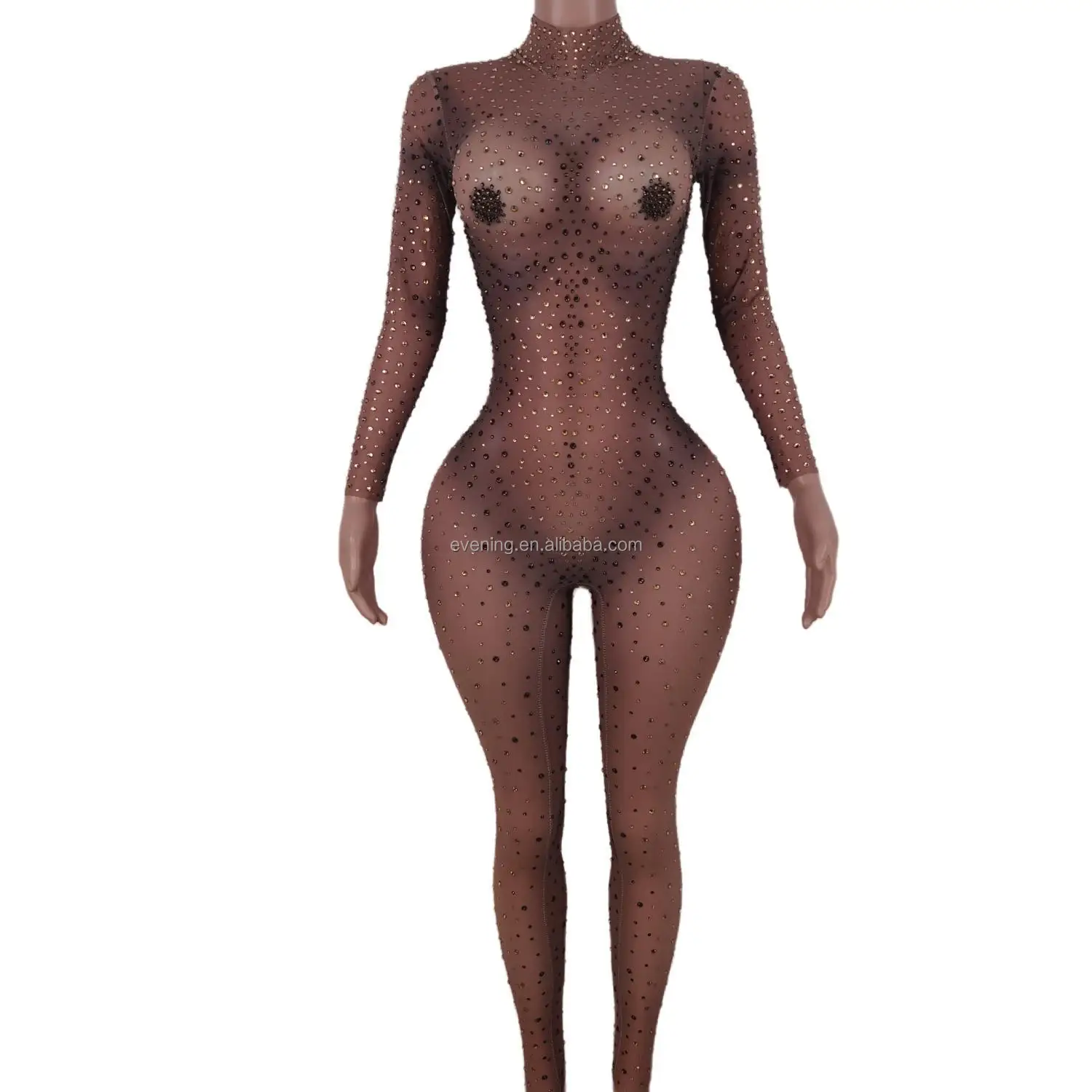 Sexy Drag Queen Mesh Diamond One Piece Bodysuits Exotic Dancewear Stripper Outfit Night Club Rompers Women Rhinestone Jumpsuit
