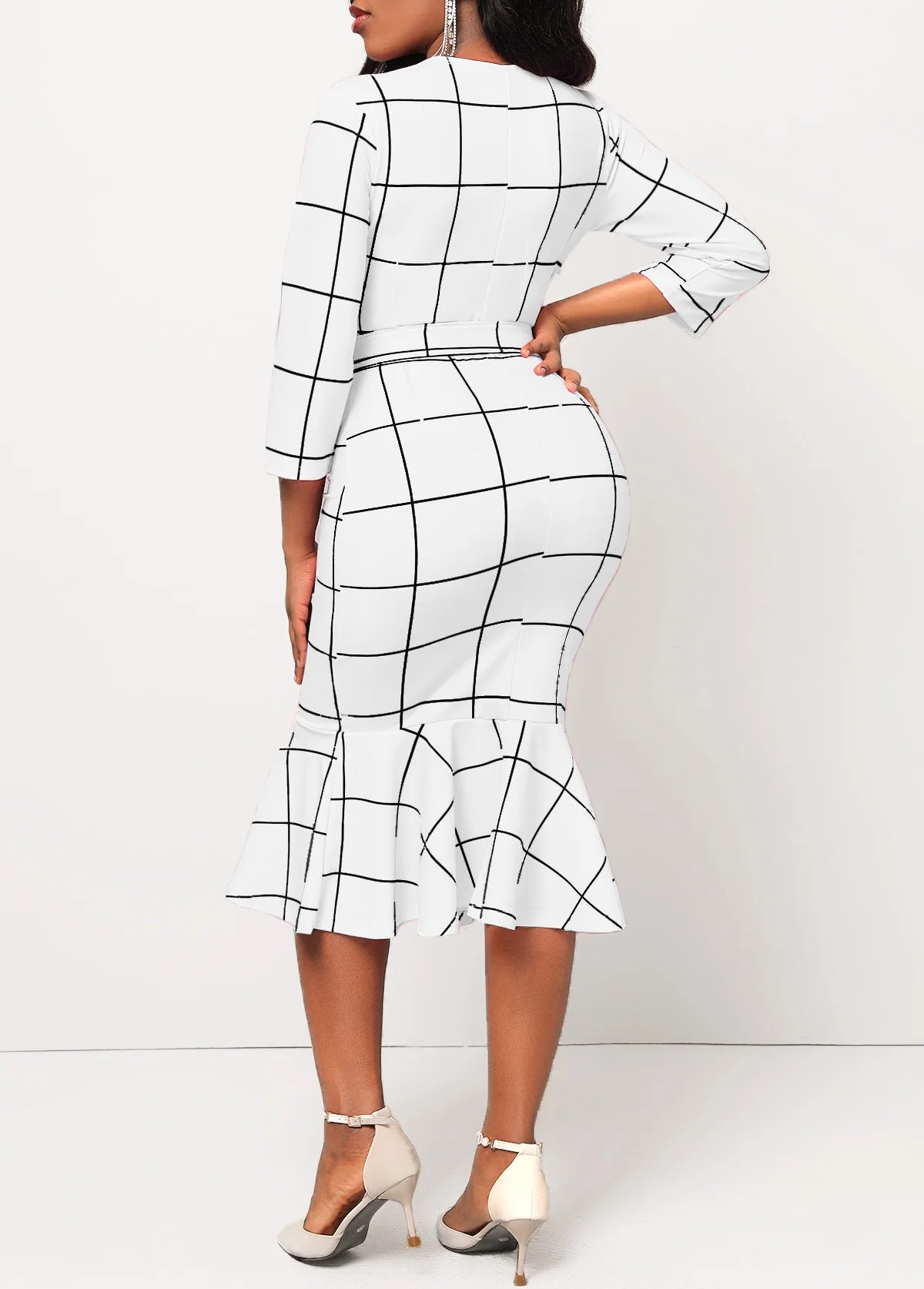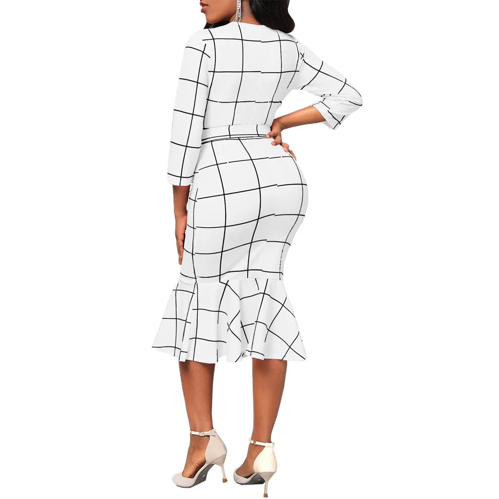 Sexy fashion solid color seven-quarter sleeve small V-neck women's dress SMR12189