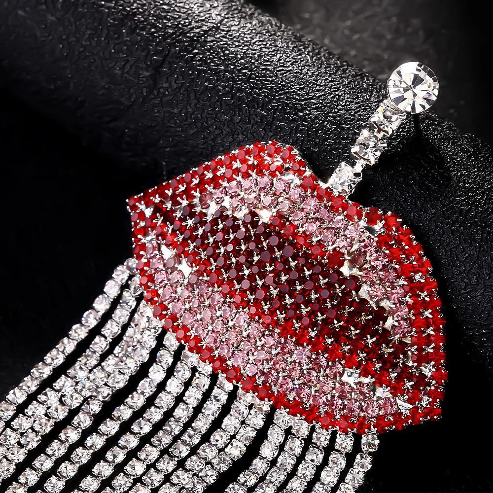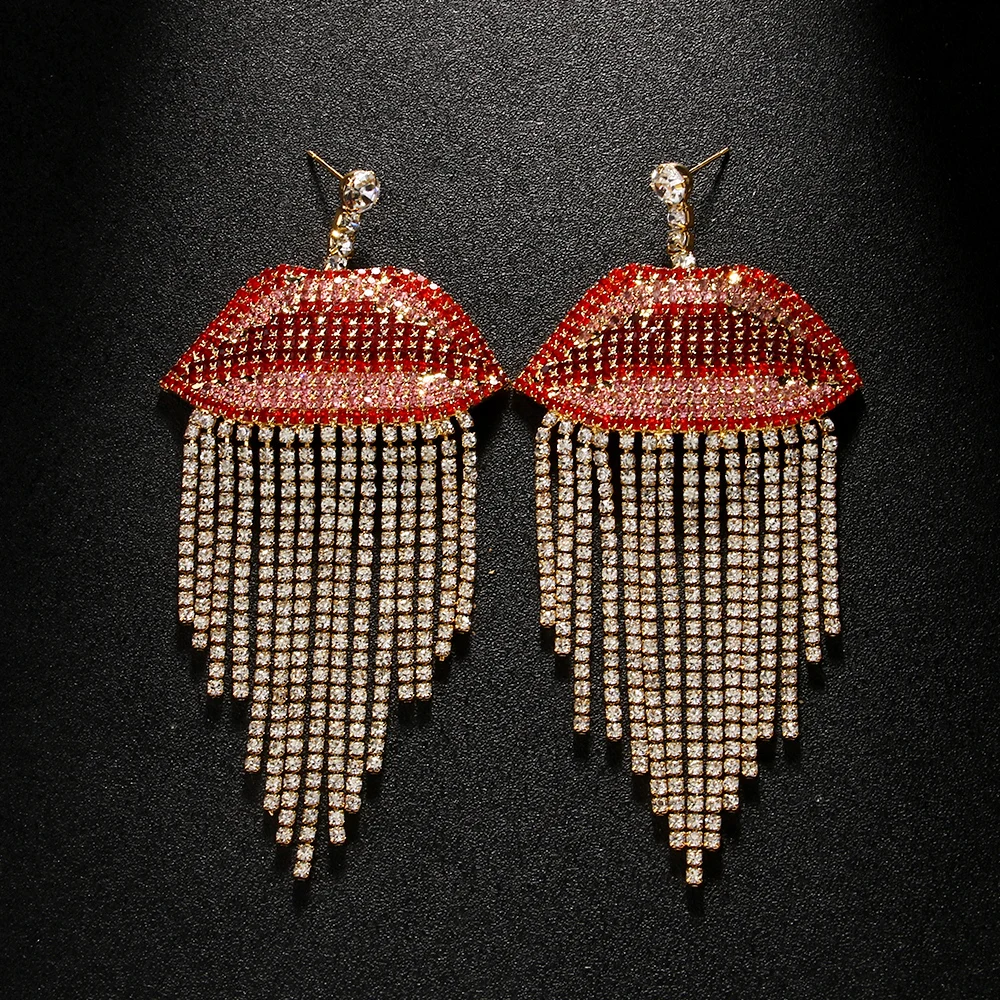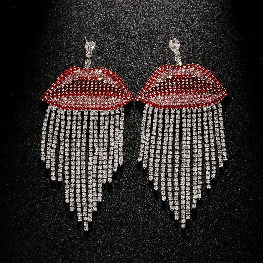 Sexy Full Rhinestone Piercing Tassel Red Lip Earrings Jewelry For Women Exaggerated Party Gift Crystal Earrings Wholesale