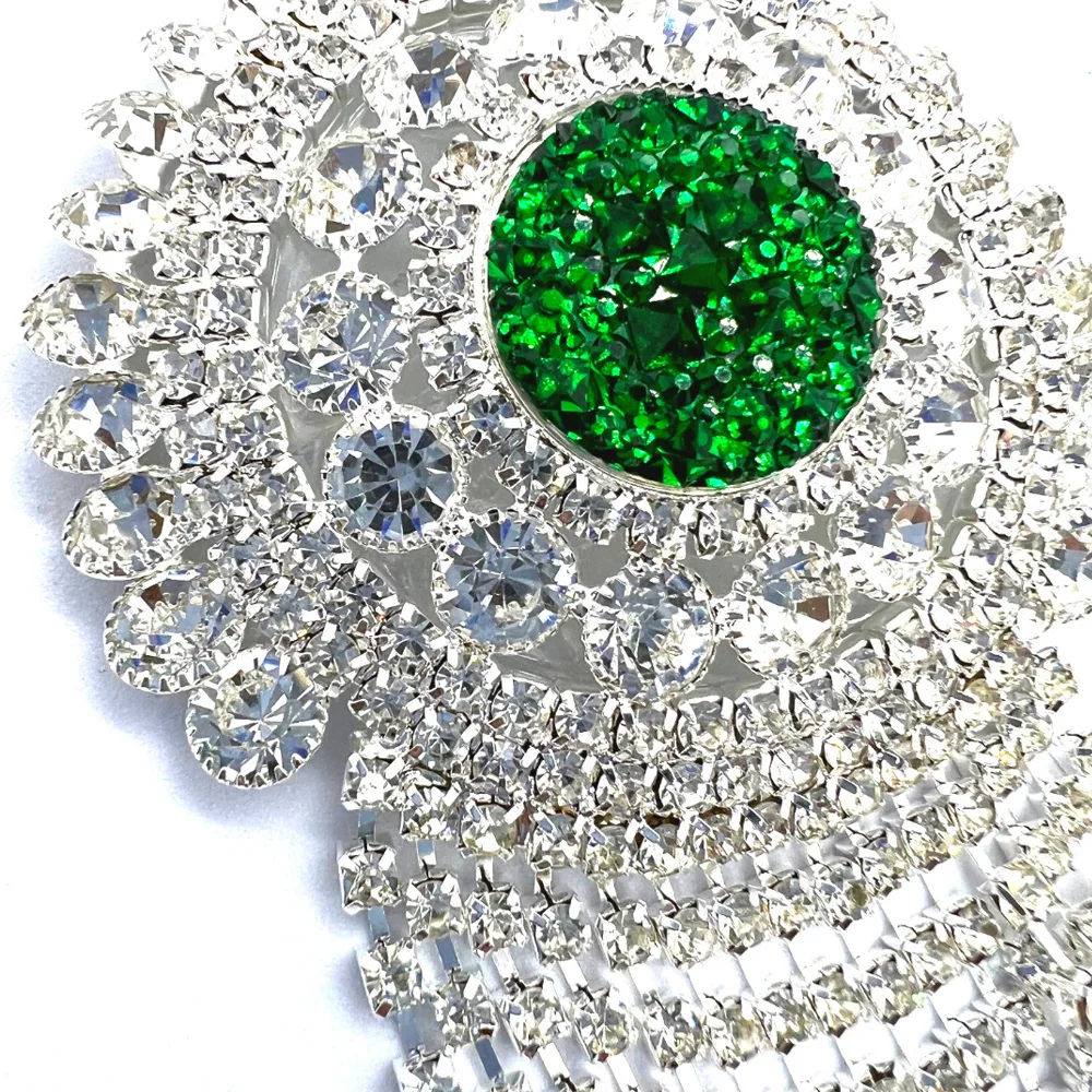 Sexy Green Rhinestone Round Shape Chest Stickers Carnival Women Tassel Bra Jewelry Nipple Stickers No Piercing Jewelry