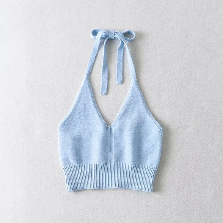 Sexy Hot Girl Halter Neck Knitted Strapless V-neck Tube Women Tank Top