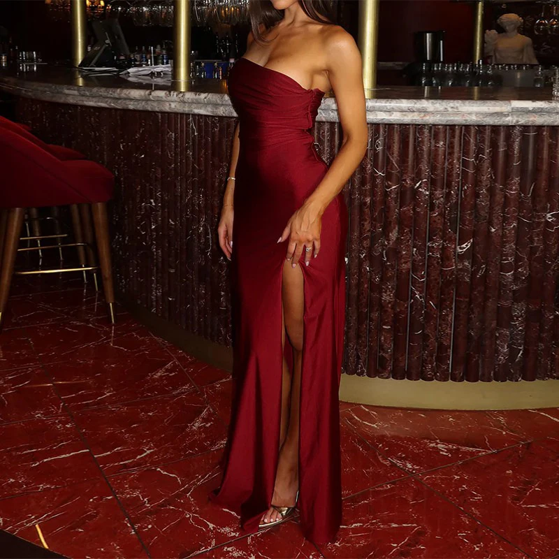 Sexy Lady Backless Slim Wrap Hip Dress 2025 Women's Strapless Split Long Dress Casual Summer High Waist Solid Satin Party Dress