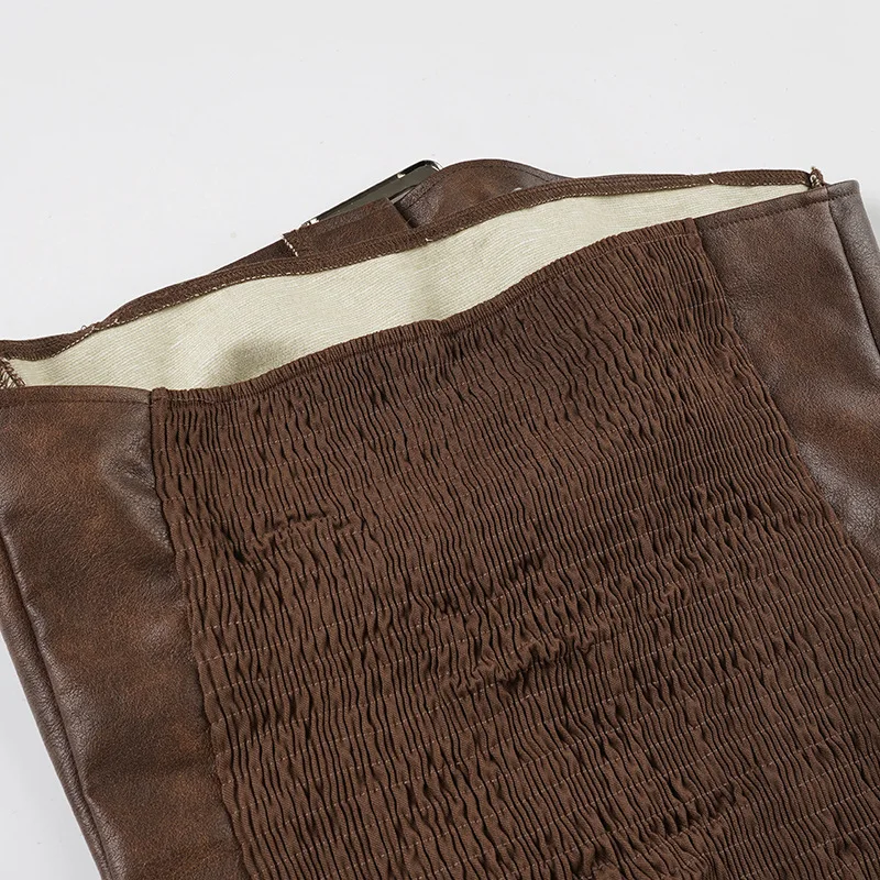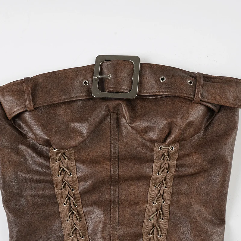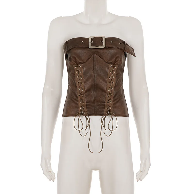 Sexy Leather Corset Vest, Cinched Waistband, Metal Buckle Top, Punk Style, Individualistic Street Style, Spicy Girl Outfit