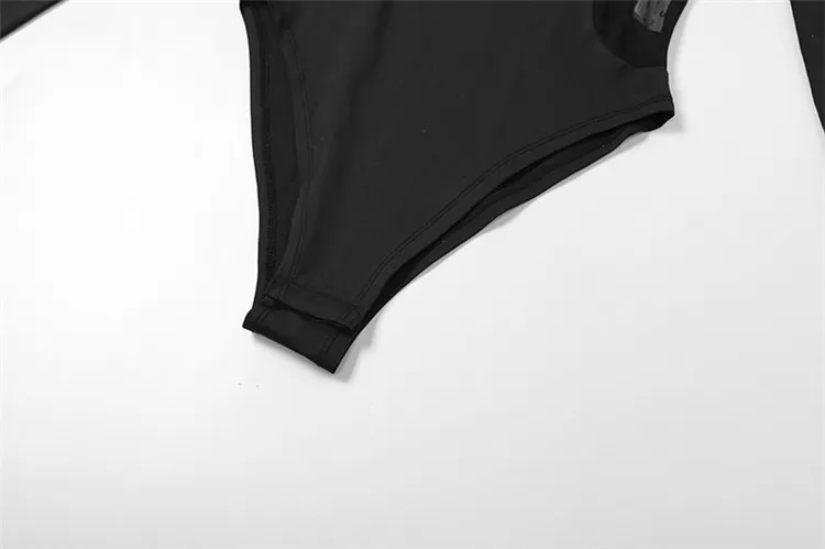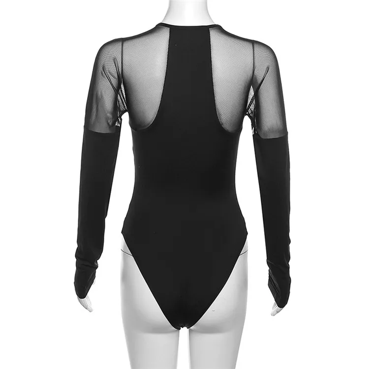 Sexy Mesh Patchwork Bodycon Bodysuit Night Club Outfits For Women 2024 Fall Long Sleeve O Neck See Through Bodysuit