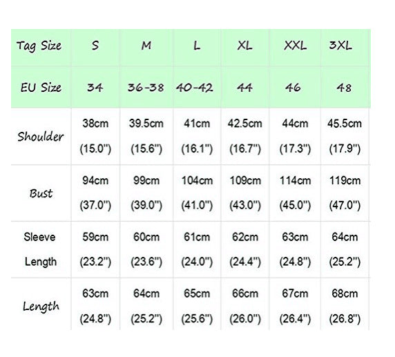 1. There maybe 1-2 cm deviation in different sizes, locations and stretch of fabrics. Size chart is for reference only; there may be a little difference with what you get.2. There are 3 kinds of elasticity: High Elasticity (two-sided stretched), Medium Elasticity (one-sided stretched) and Nonelastic (can not stretched).