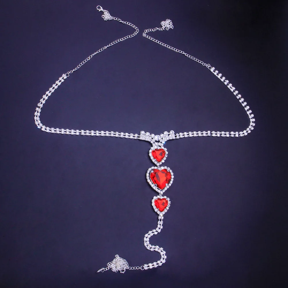 Item:Body Chain Product name:Rhinestone Red Heart Belly Waist Chain Thong Women Body Jewelry Color:Silver,Gold Occasions: Party, Festivals,  Wedding, Clubs, Get-together, Others Size:Adjustable We support wholesale ,Price friendly,Welcome to consult.