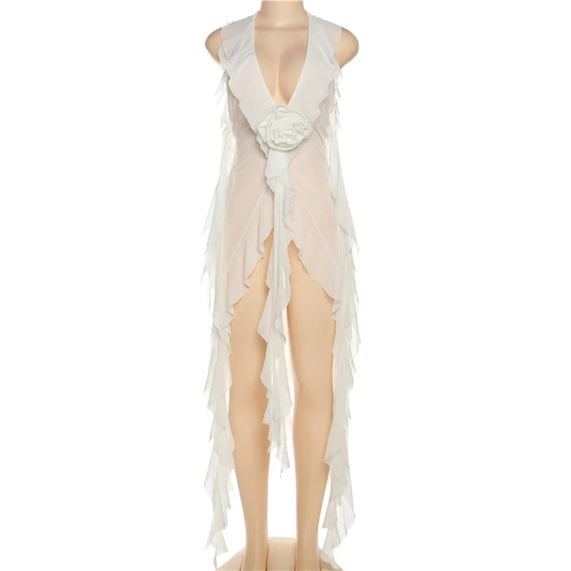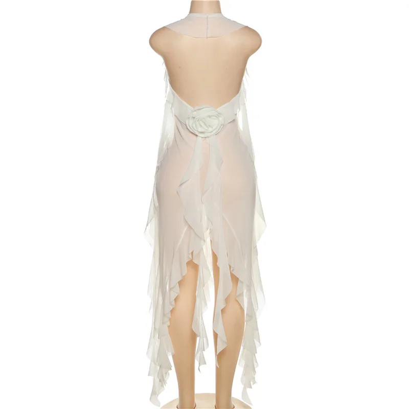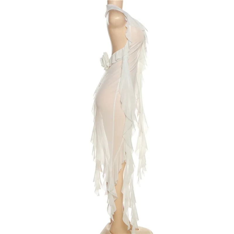 Sexy Ruffles Bodycon Backless See Through Night Sexy Dress Flower Long For Women Modest Beach Wear