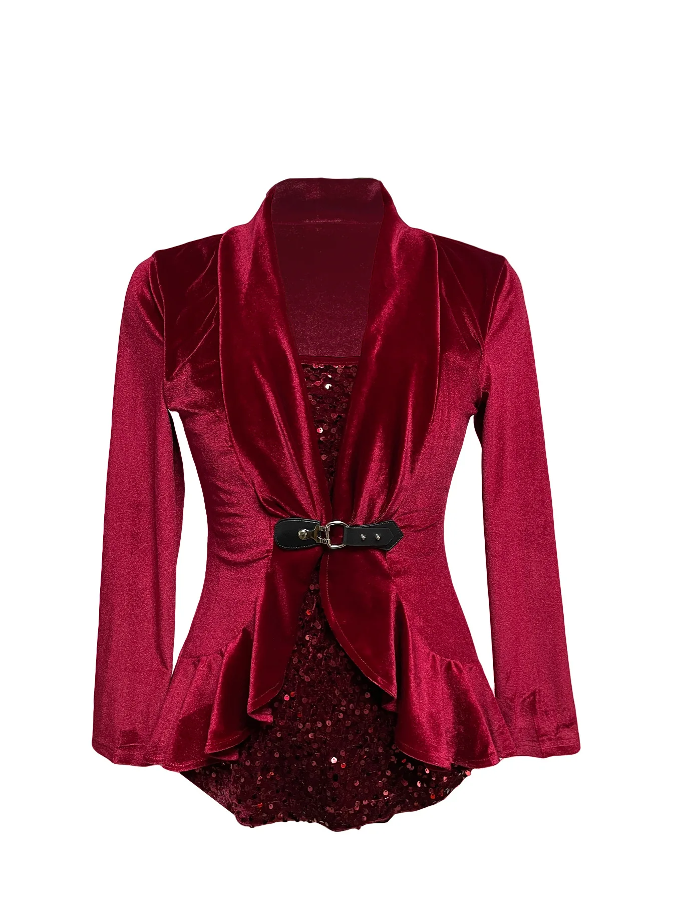 Sexy Sequin Contrast Blouse Jacket Women Formal wear Long Sleeve Button Lapel Top Loose 2025 Women's Top