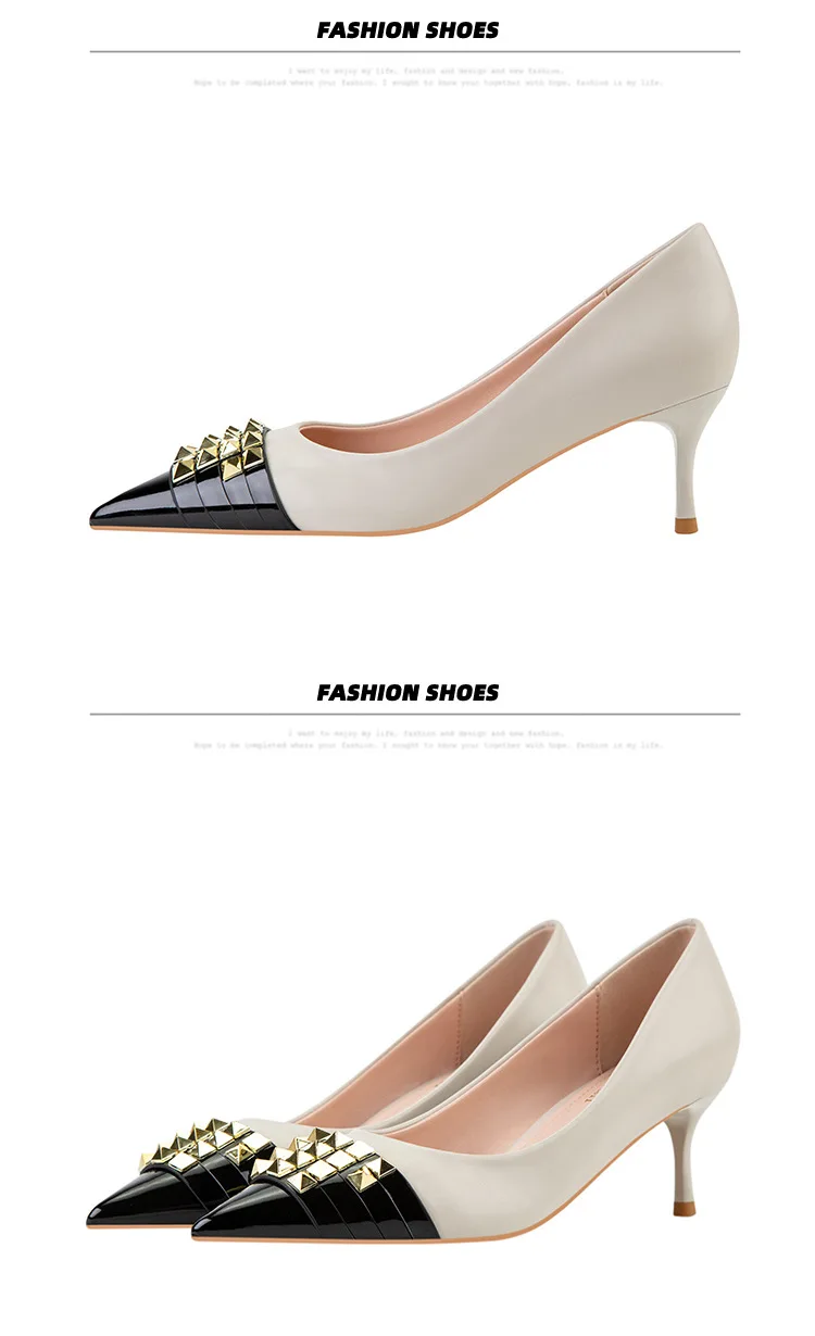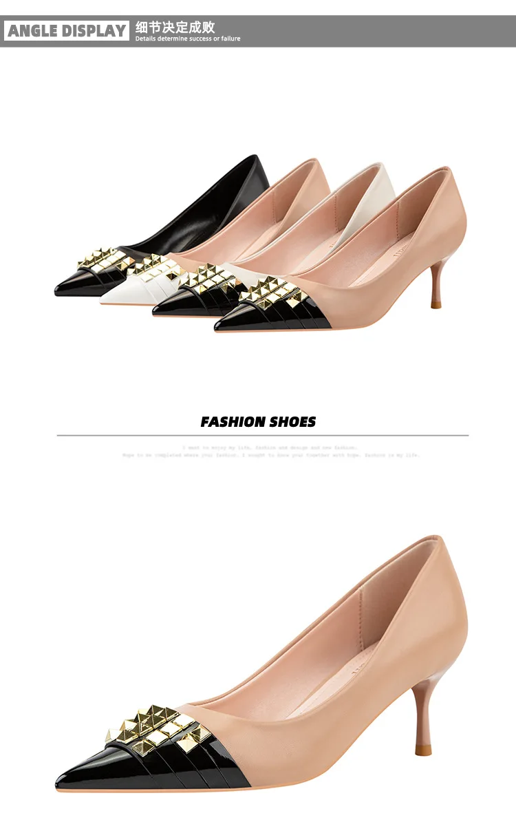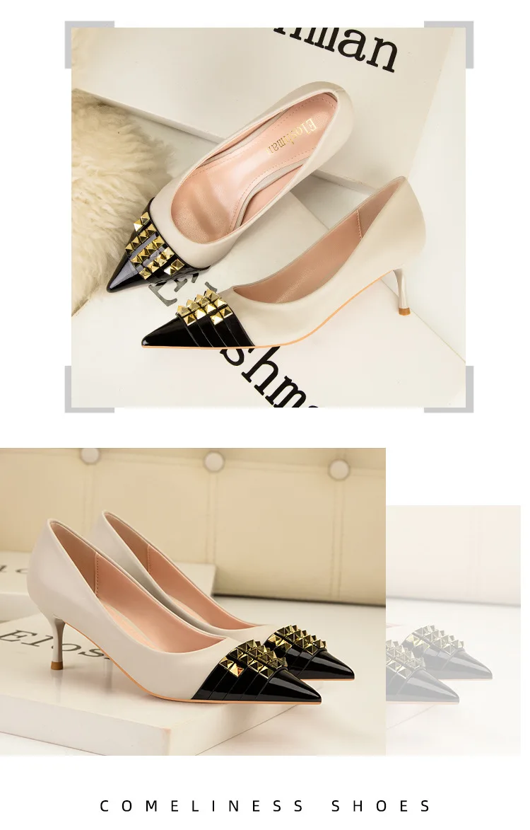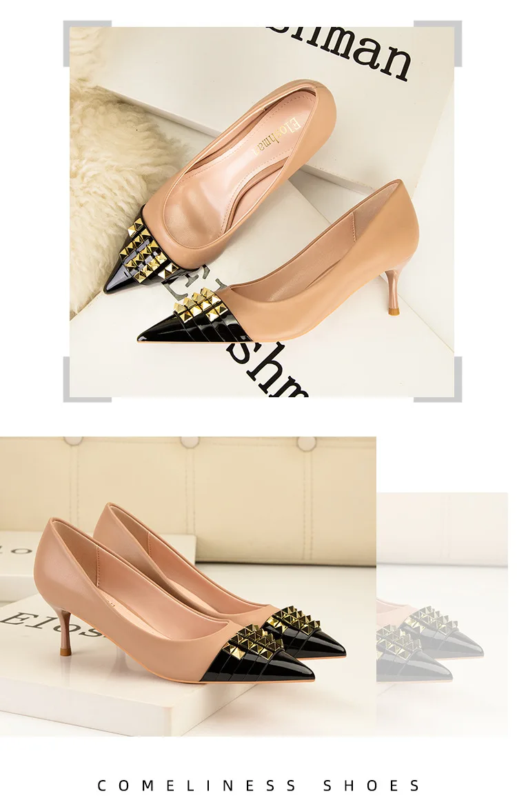 Sexy Slim High Heels Shoes Women Shoes Thin Heels Shallow Pointed Rivet Ladies High Heels Spring Ladies Pump Shoes
