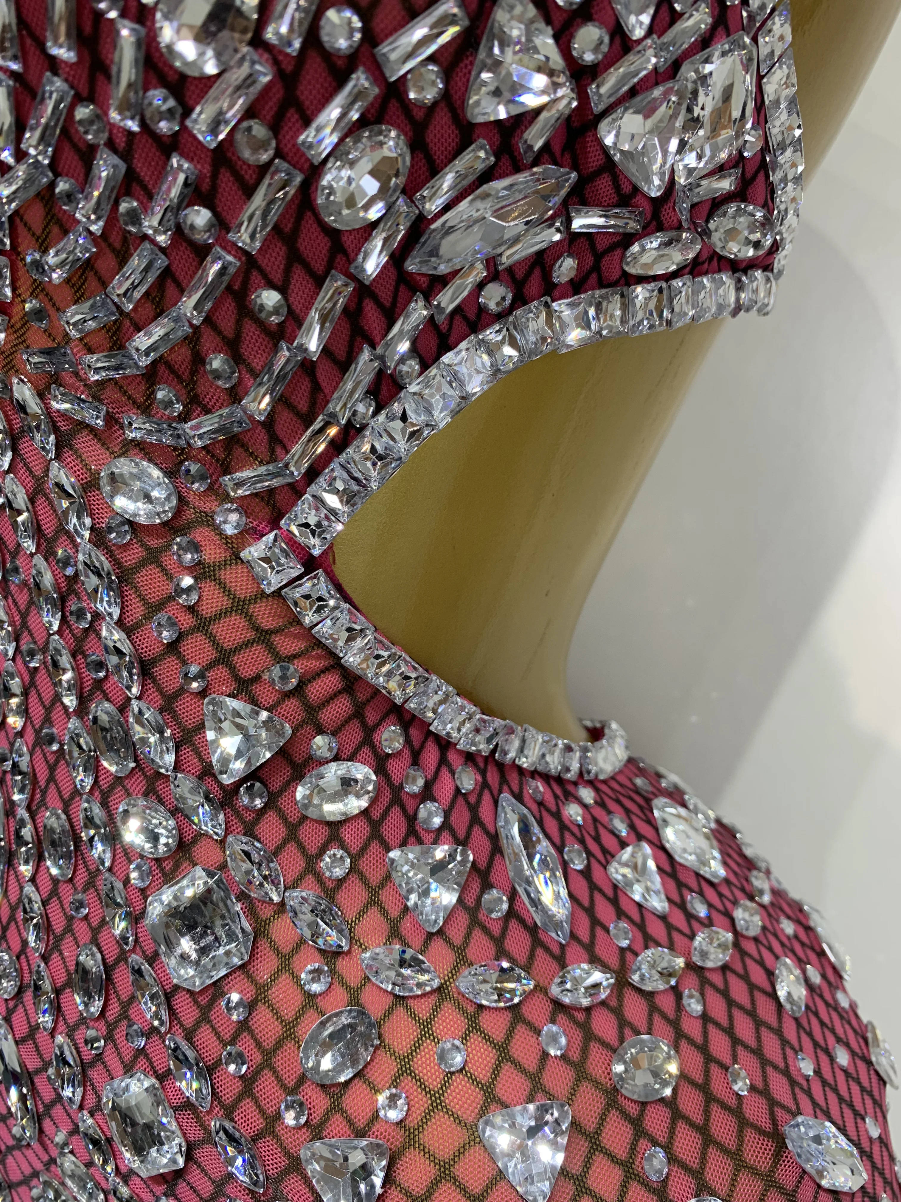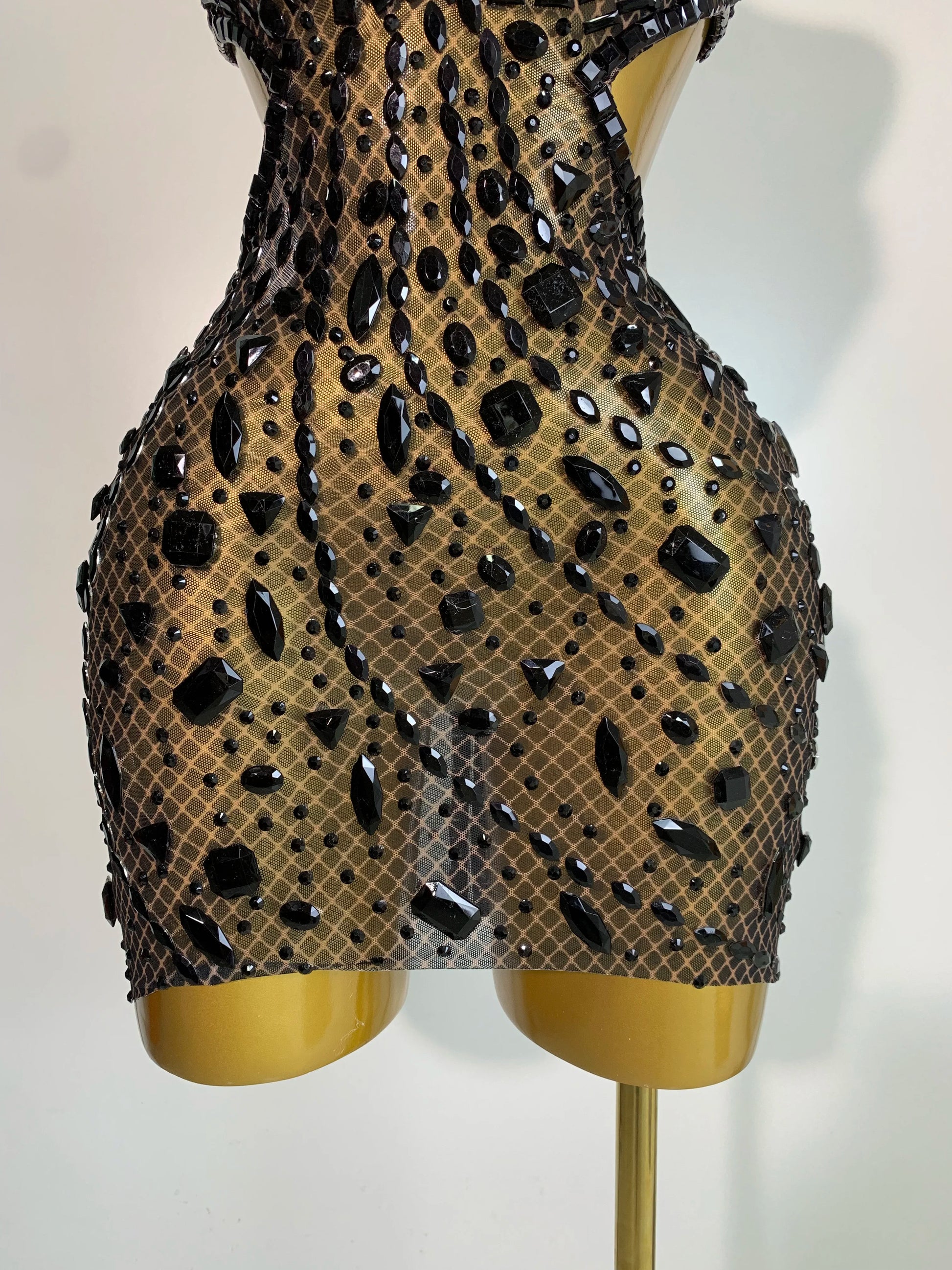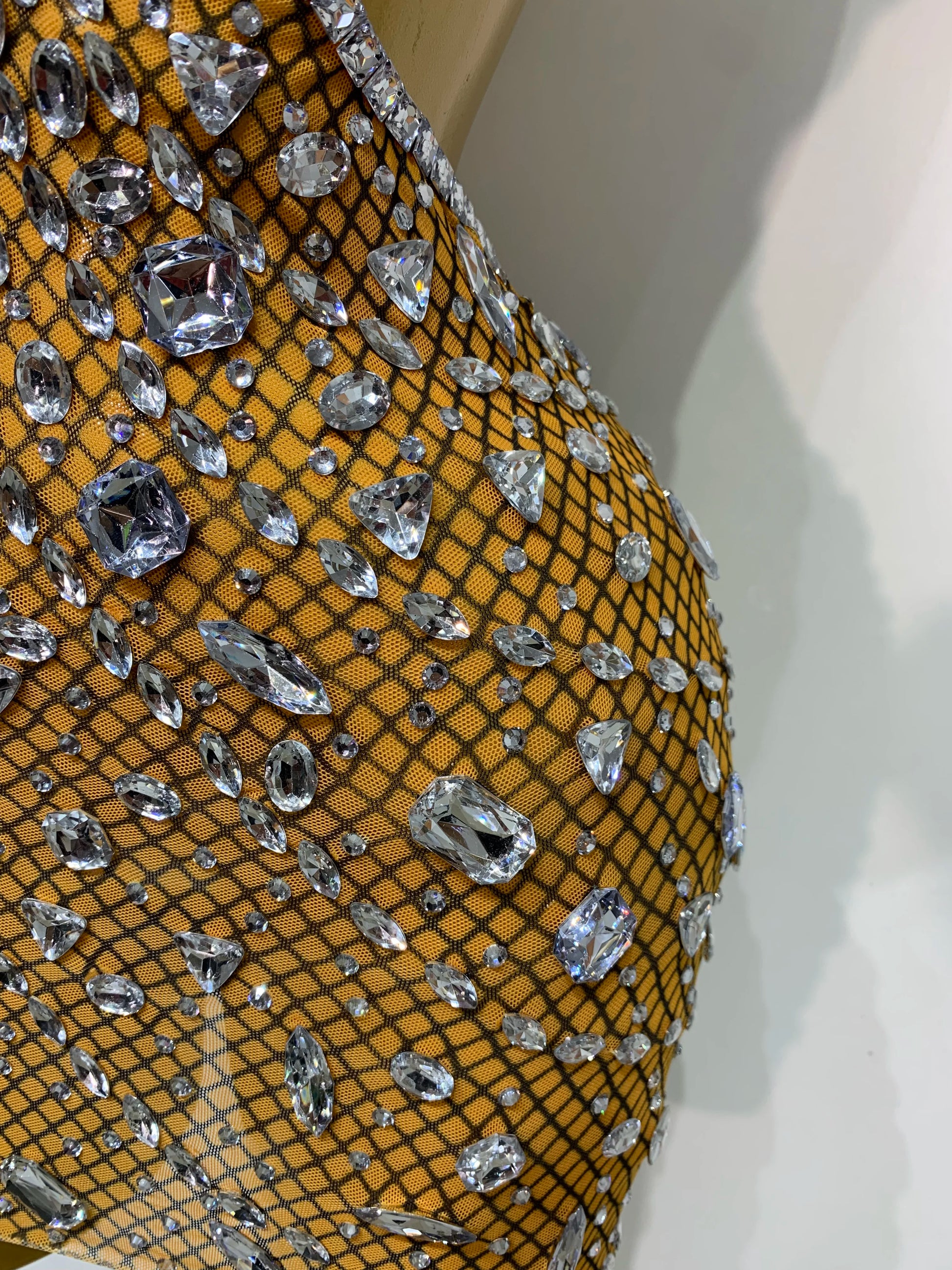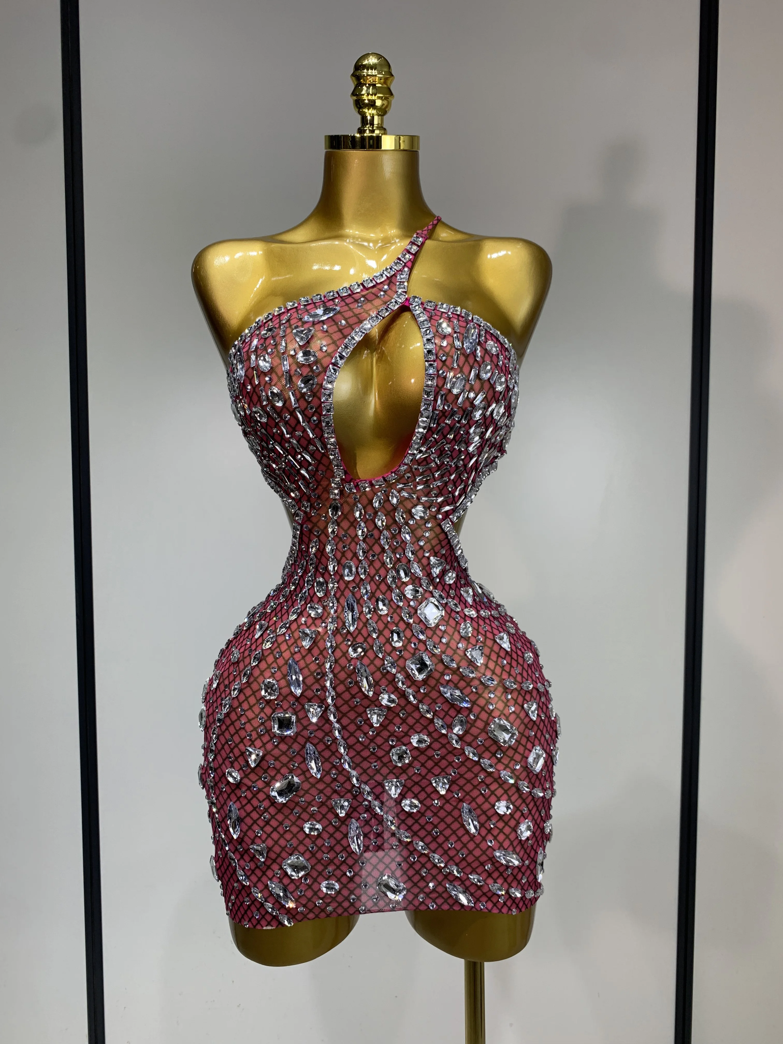 Sexy Sparkly Diamond Backless Short Dress 2025 Women Sleeveless Mesh See Through Evening Birthday Gown Singer Stage Outfit