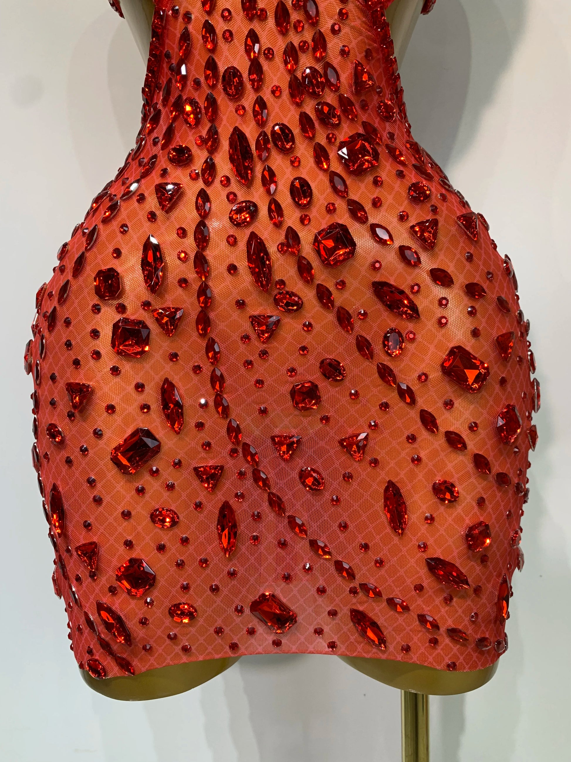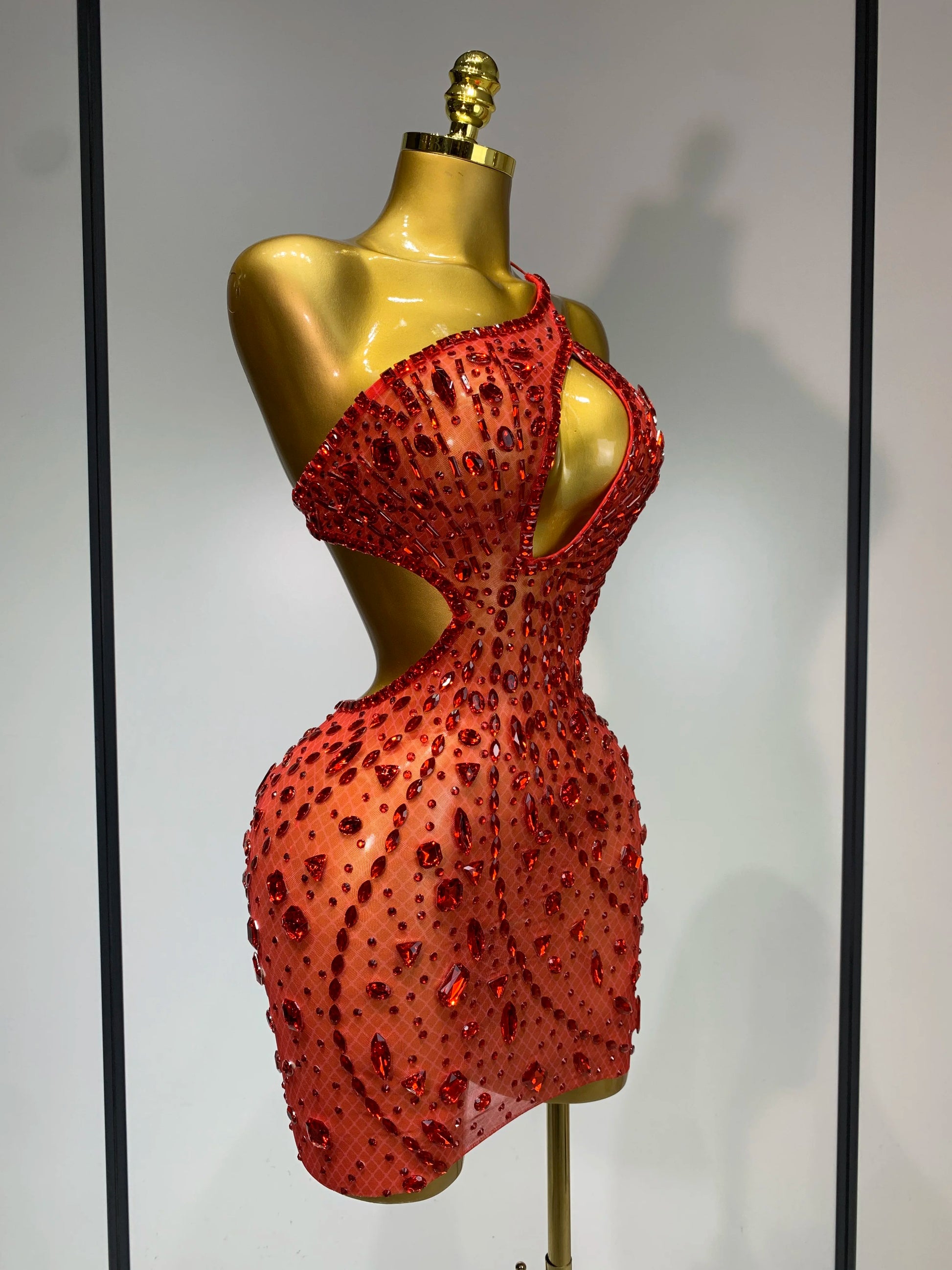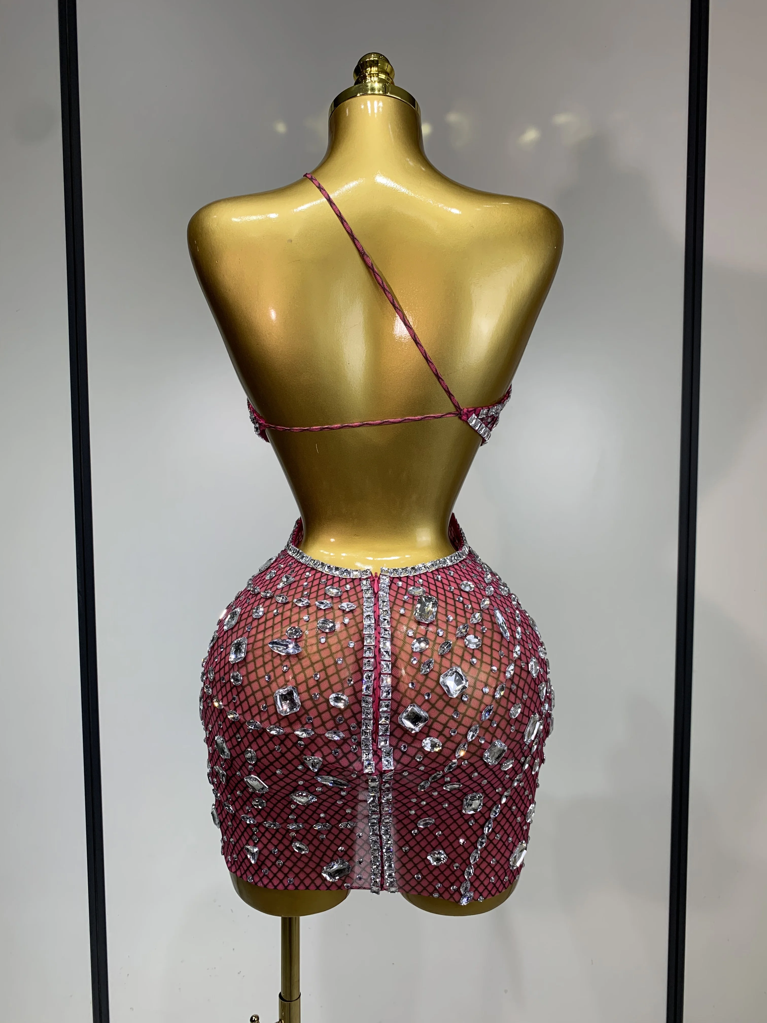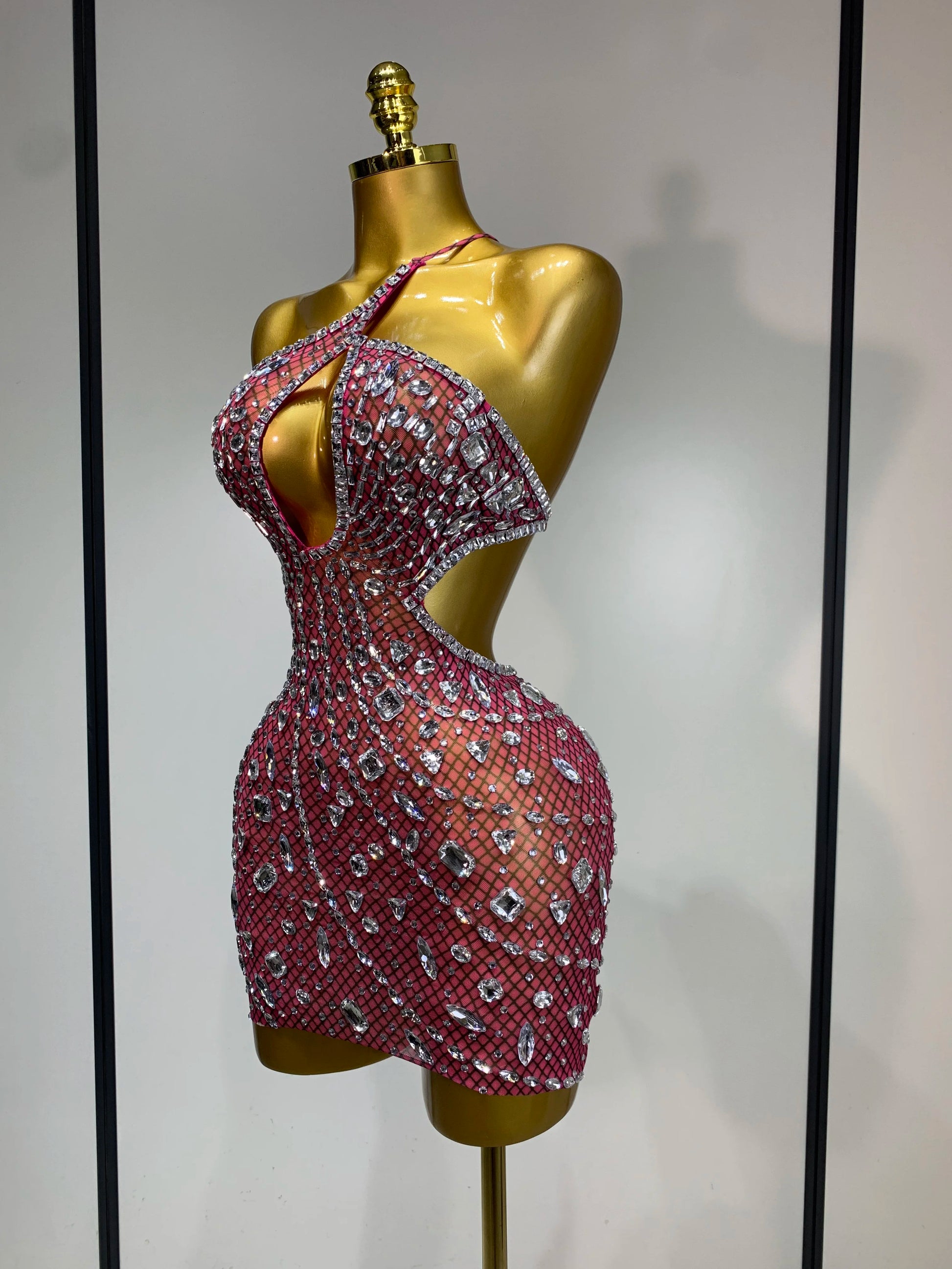 Sexy Sparkly Diamond Backless Short Dress 2025 Women Sleeveless Mesh See Through Evening Birthday Gown Singer Stage Outfit