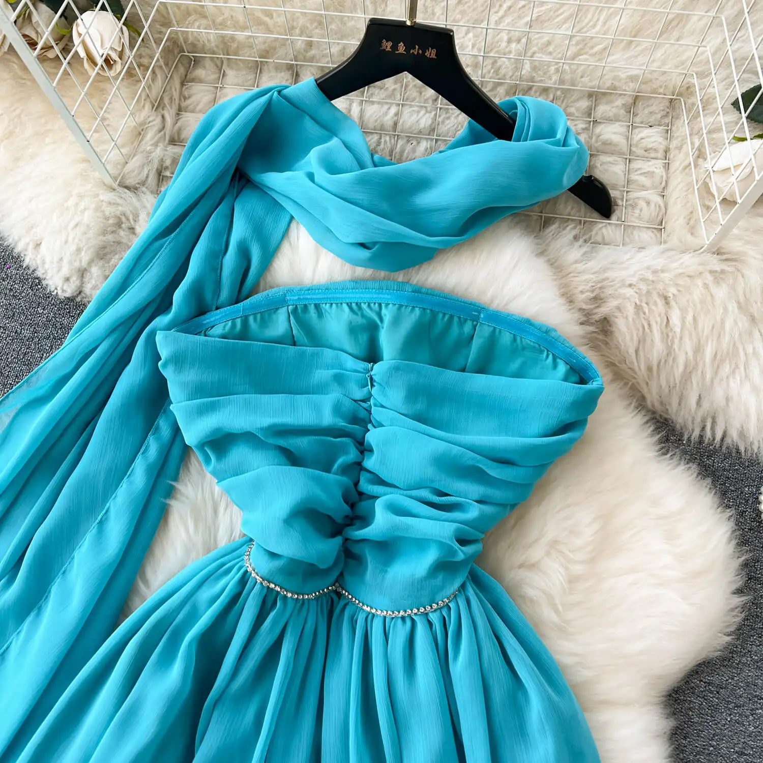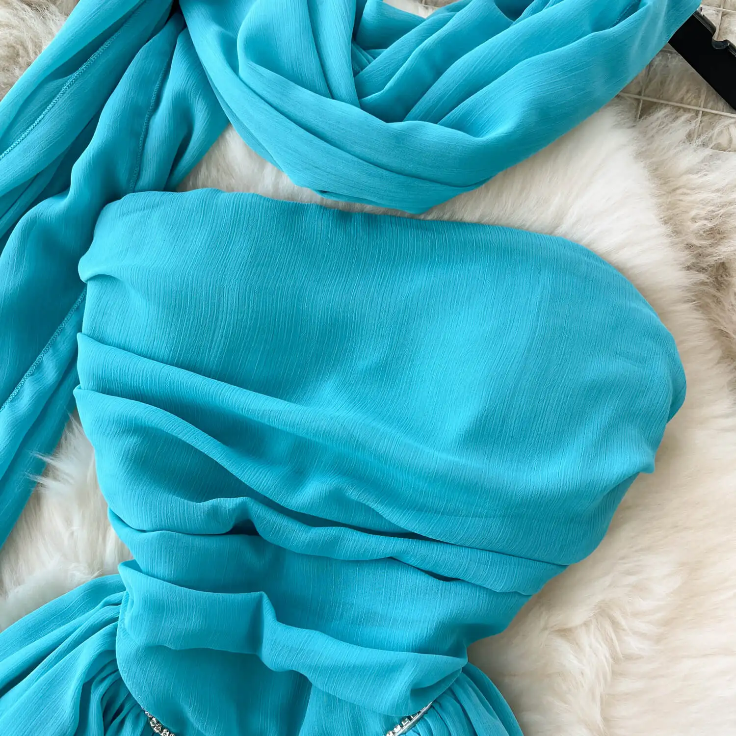 Sexy Strapless Pleated Midi Dress For Women Sleeveless Empire Lace Vestidos Ladies Elegant Dresses Clothes Women