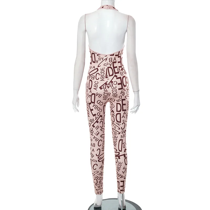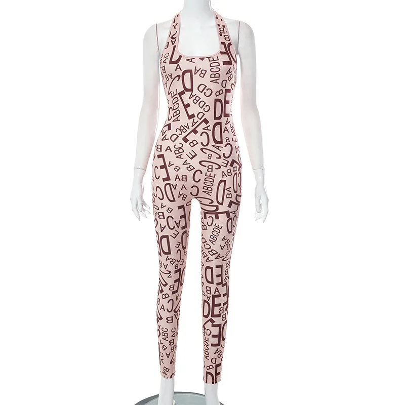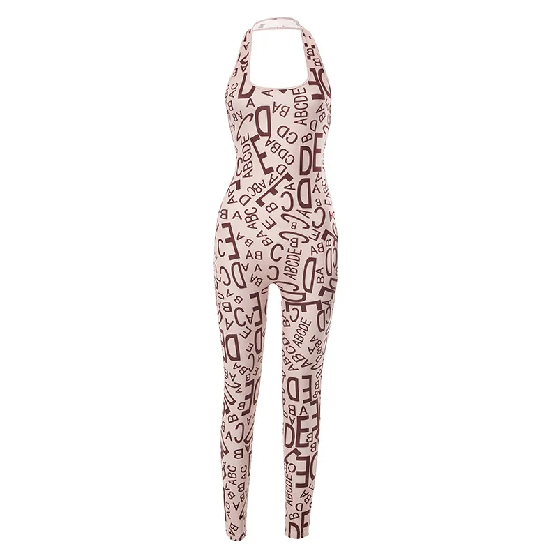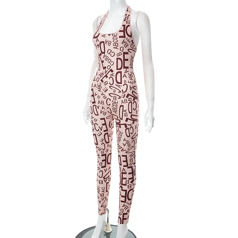 Sexy Summer New Arrivals Womens Jumpsuit Sleeveless Letter Printed Backless Bodysuit Yoga Leggings Lady Clothing