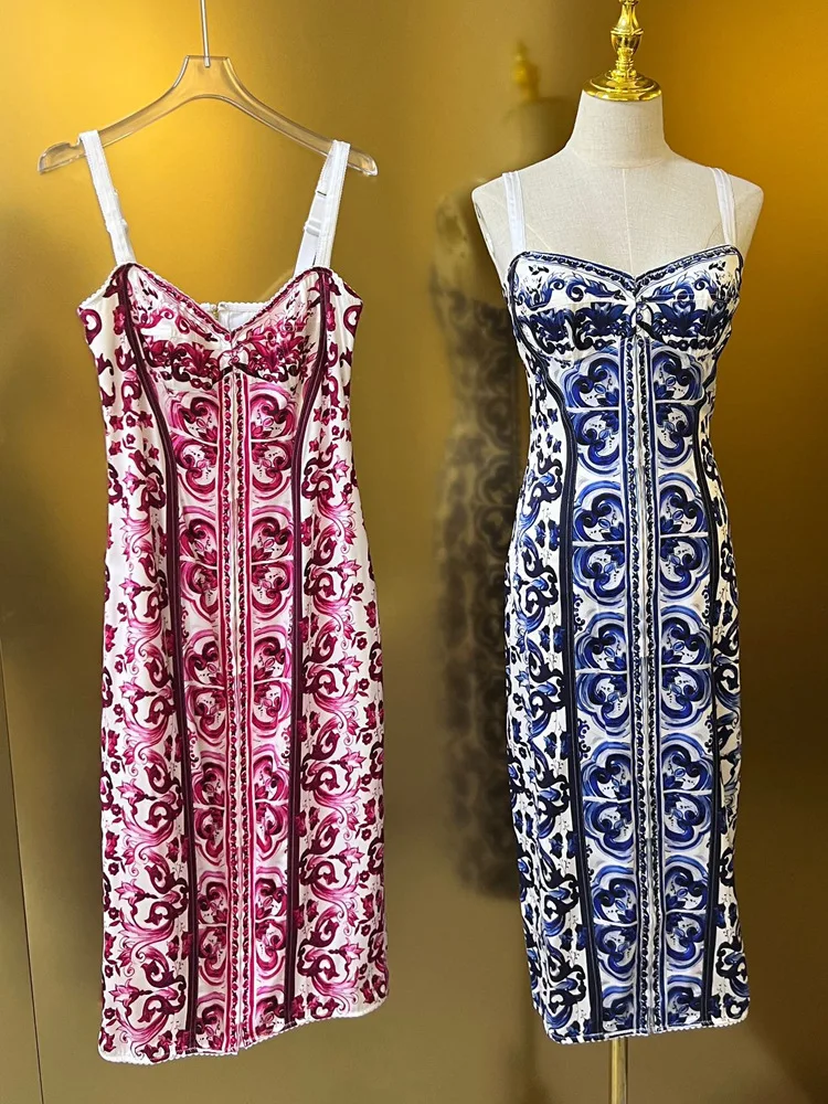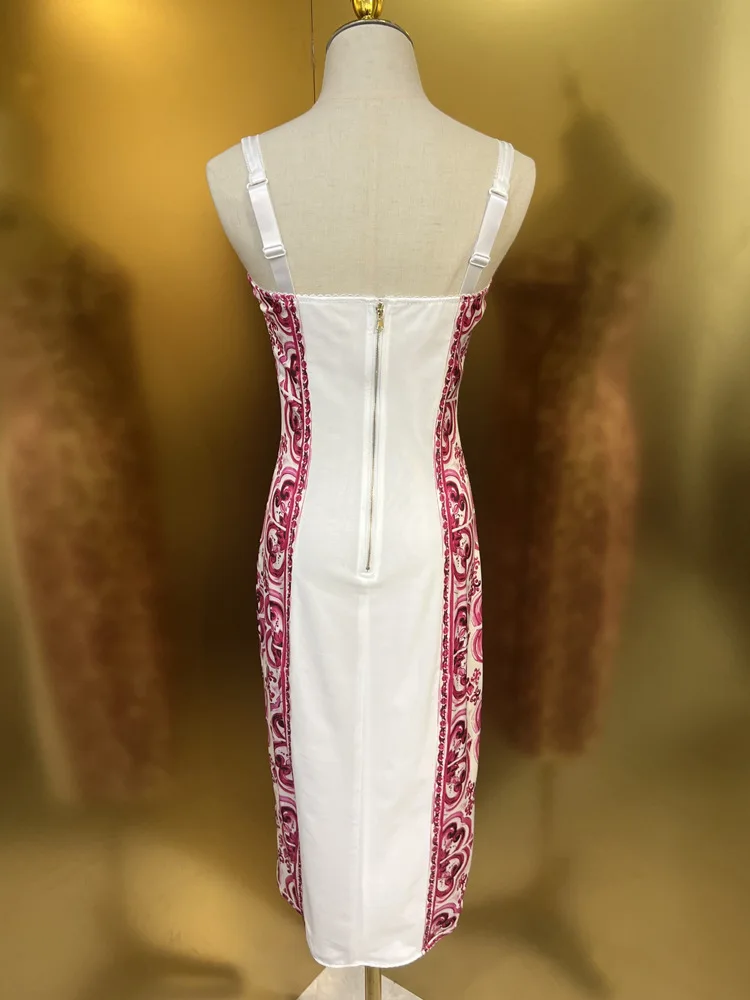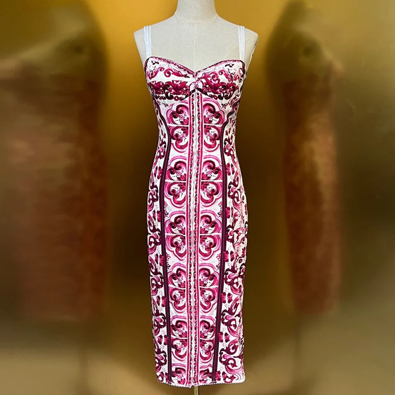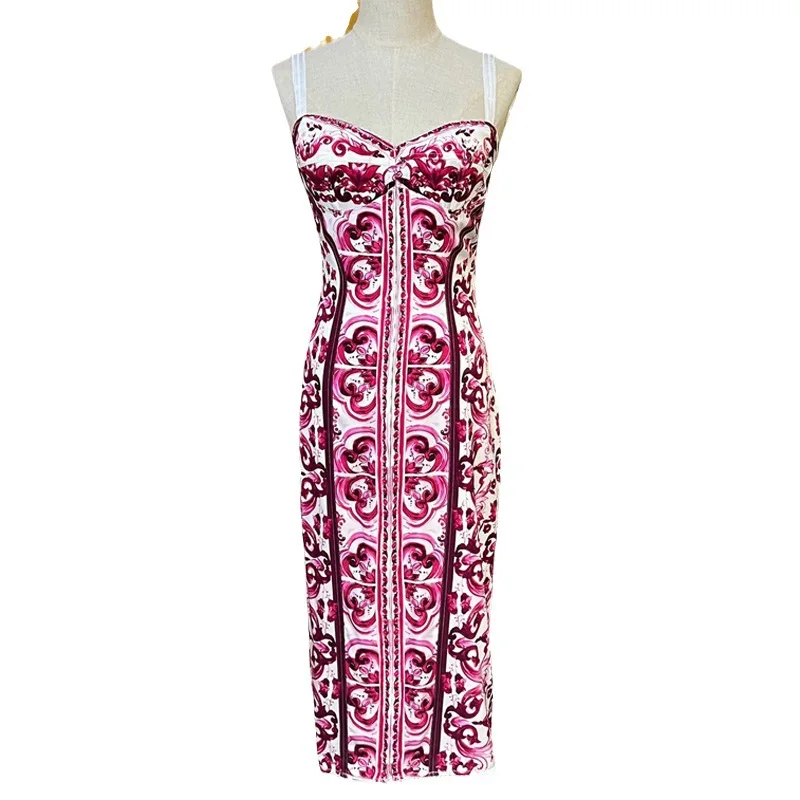 Sexy Texture V Neck Halter Red Print Tight High Waist Women's Dresses 2023 Summer Elegant Fashion Personality Women's Clothing