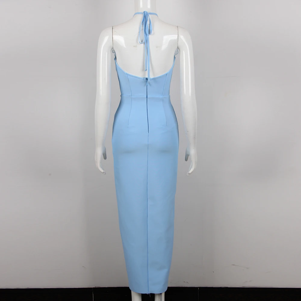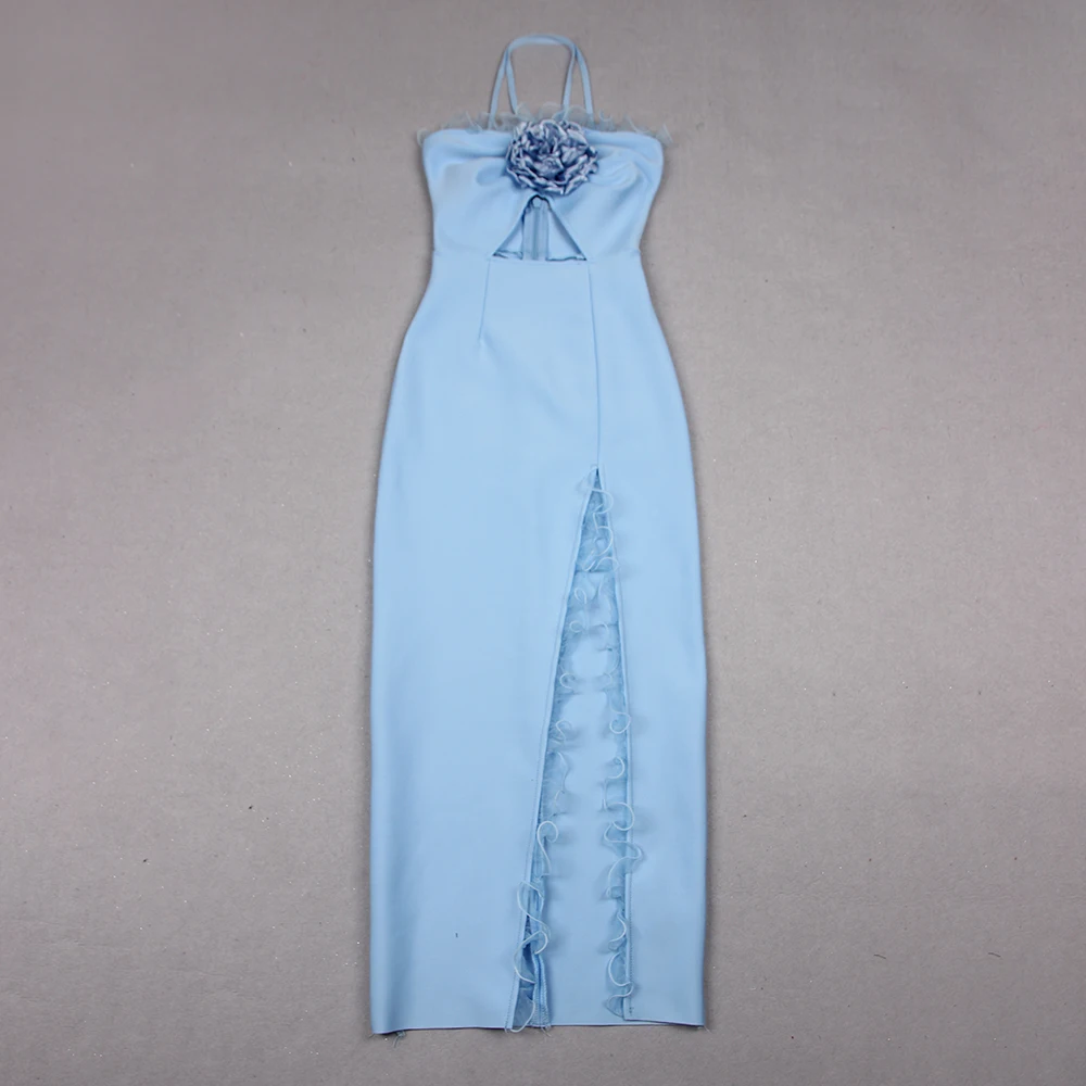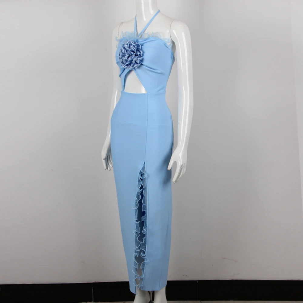 3D Floral Halter Bandage Dress Summer Holiday Vacation Long Casual Dress