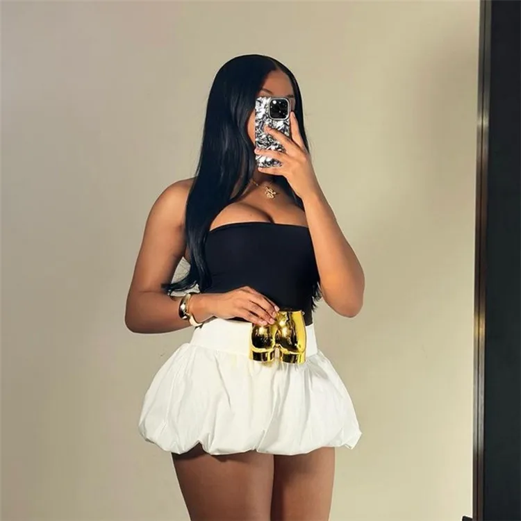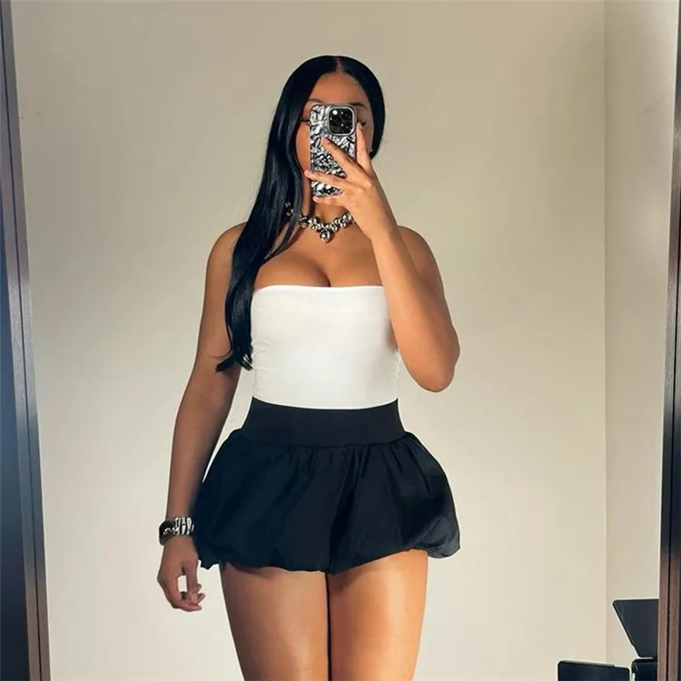 Sexy Women's Mini Short Skirt Fashion Summer 2024 Pleated Bubble Mini Skirt