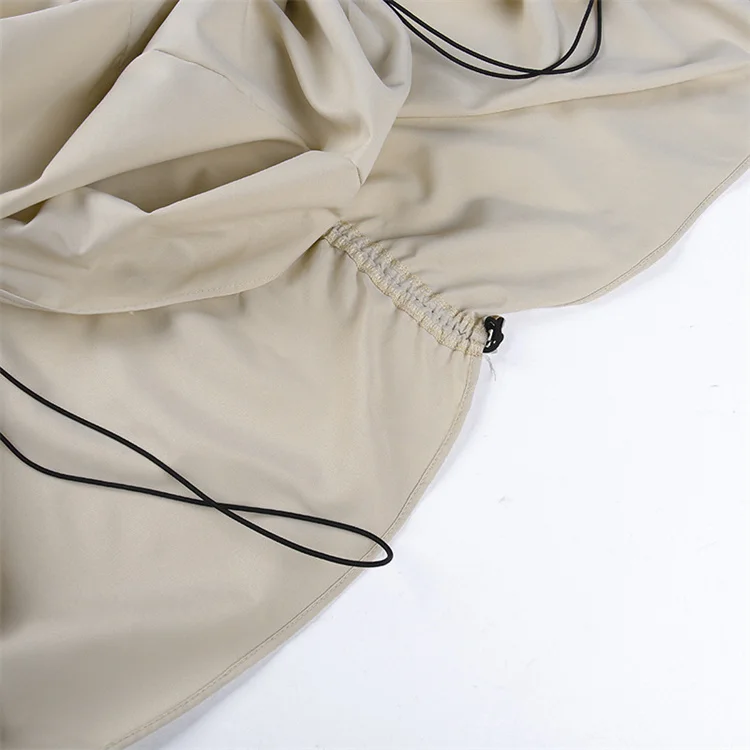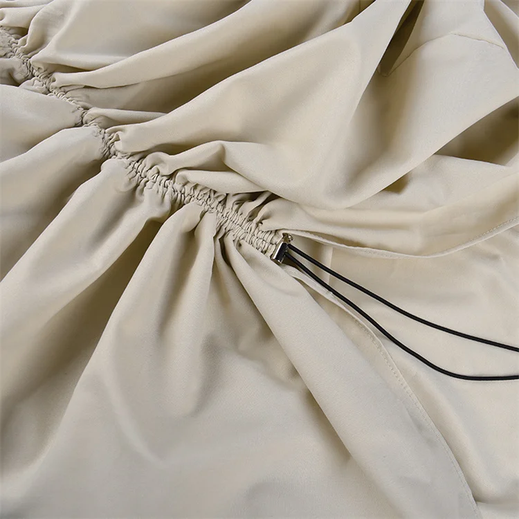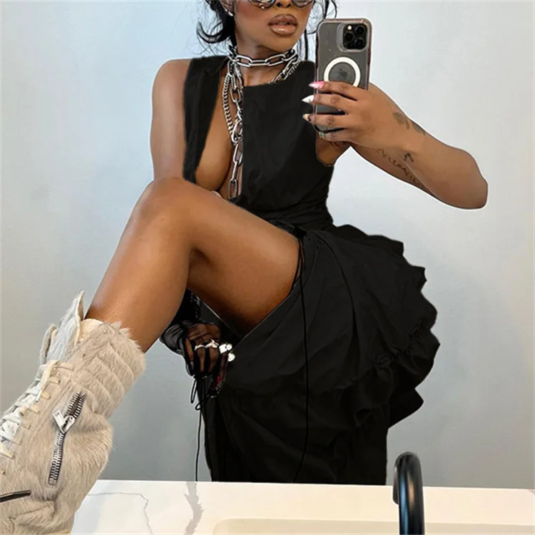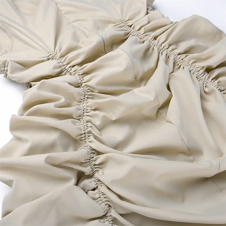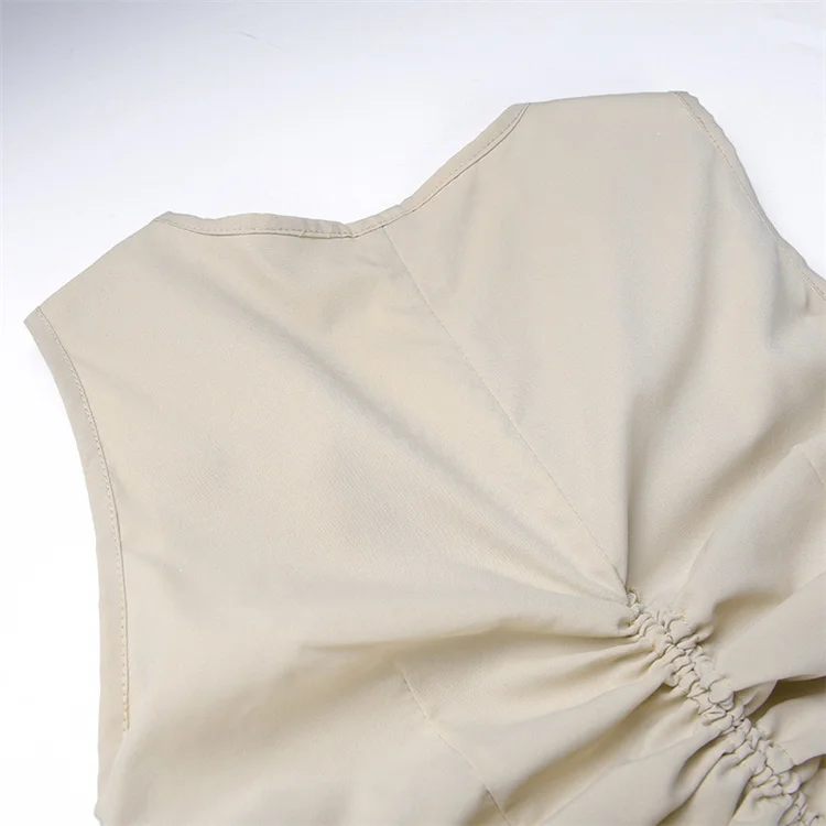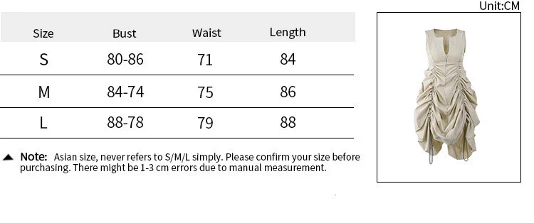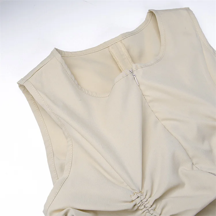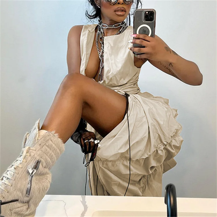 Sexy Zip Deep V Drawstring Puff Sleeveless Dress Folds Bodycon Women Casual Sleeveless Tank Dresses