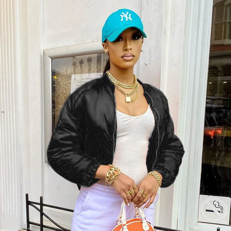 Sexy Zipper Motorcycle Softshell Puffer Jacket Zipper Up Solid Ladies Coat Stand Collar Long Sleeve Womens Down Coats