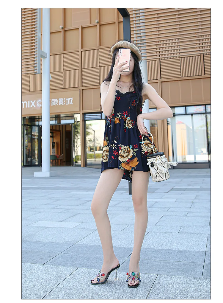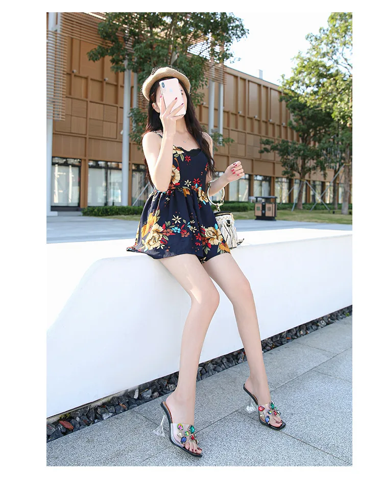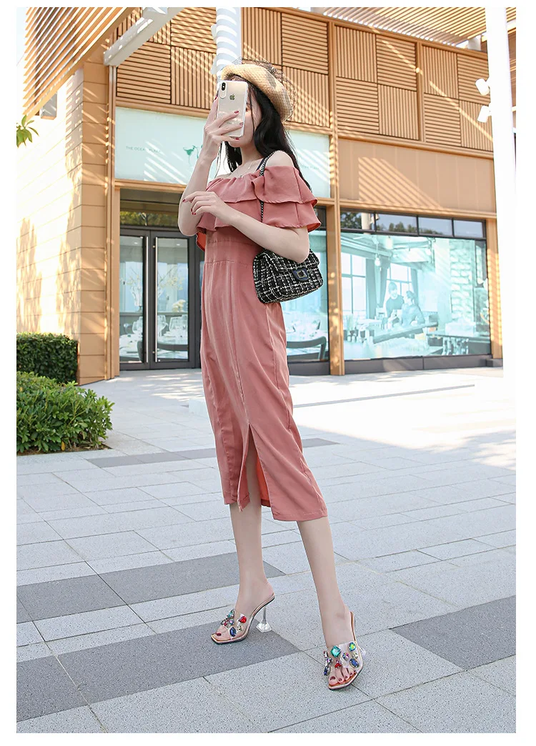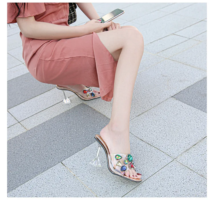 sh11157a wholesale 2023 PVC slippers transparent square heeled sandals