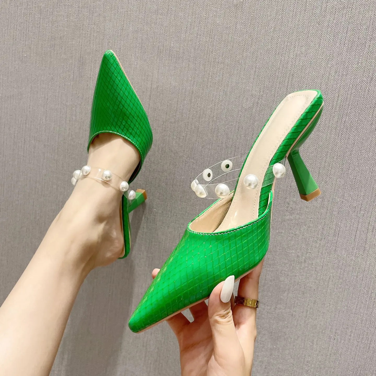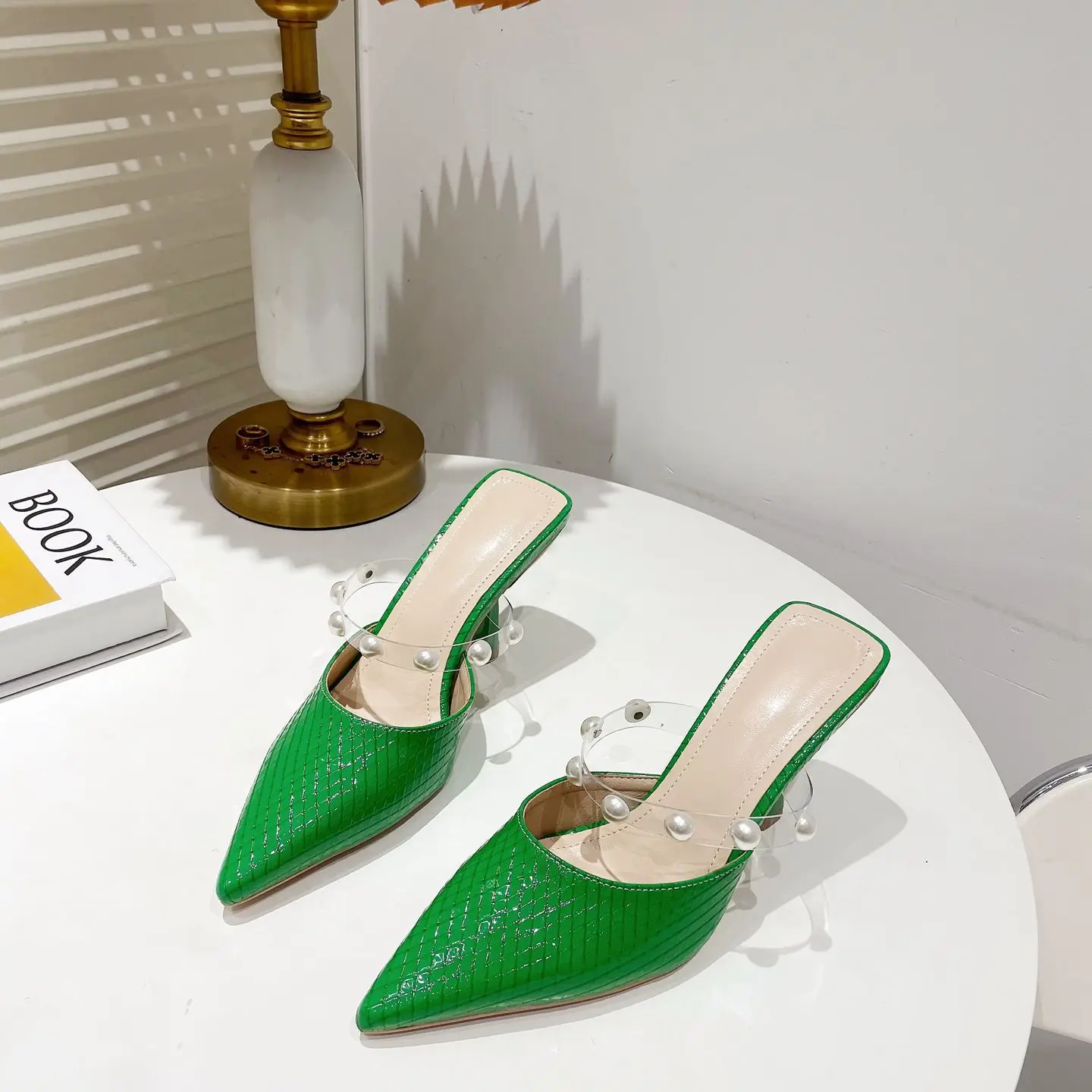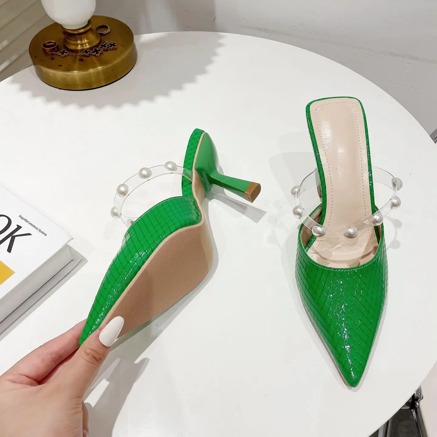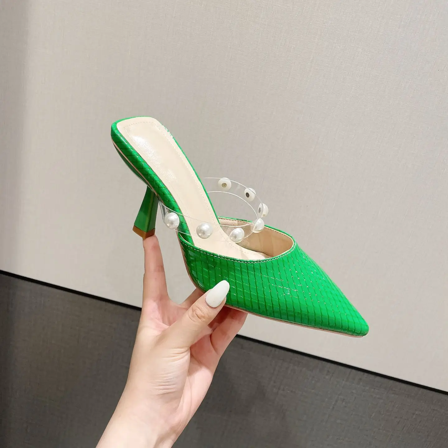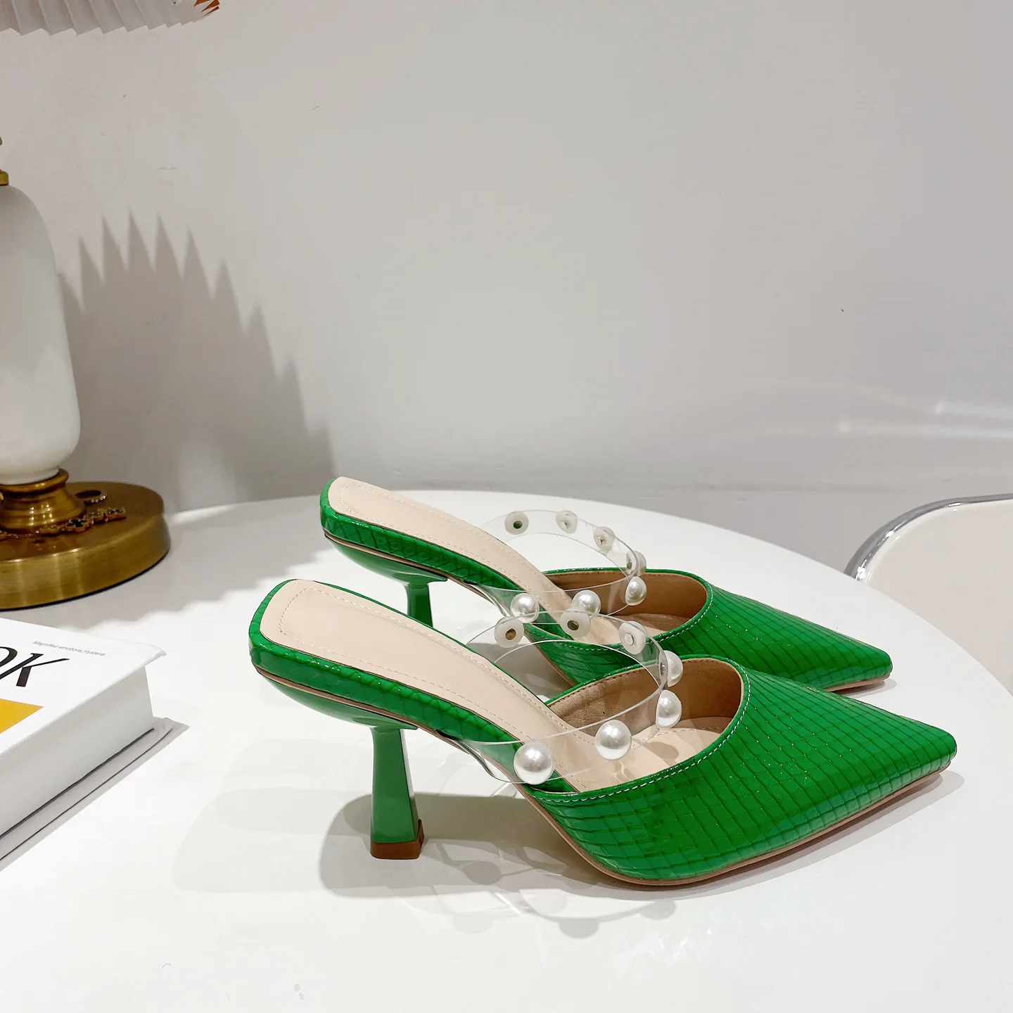 sh11174a Green color slides slippers 2023 trendy stilettoe pointed heels for ladies