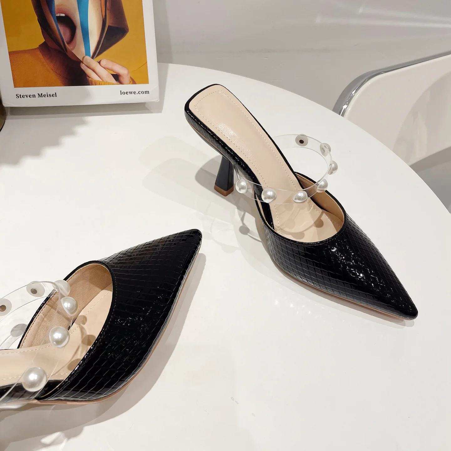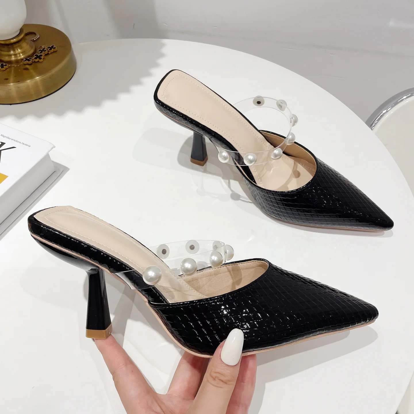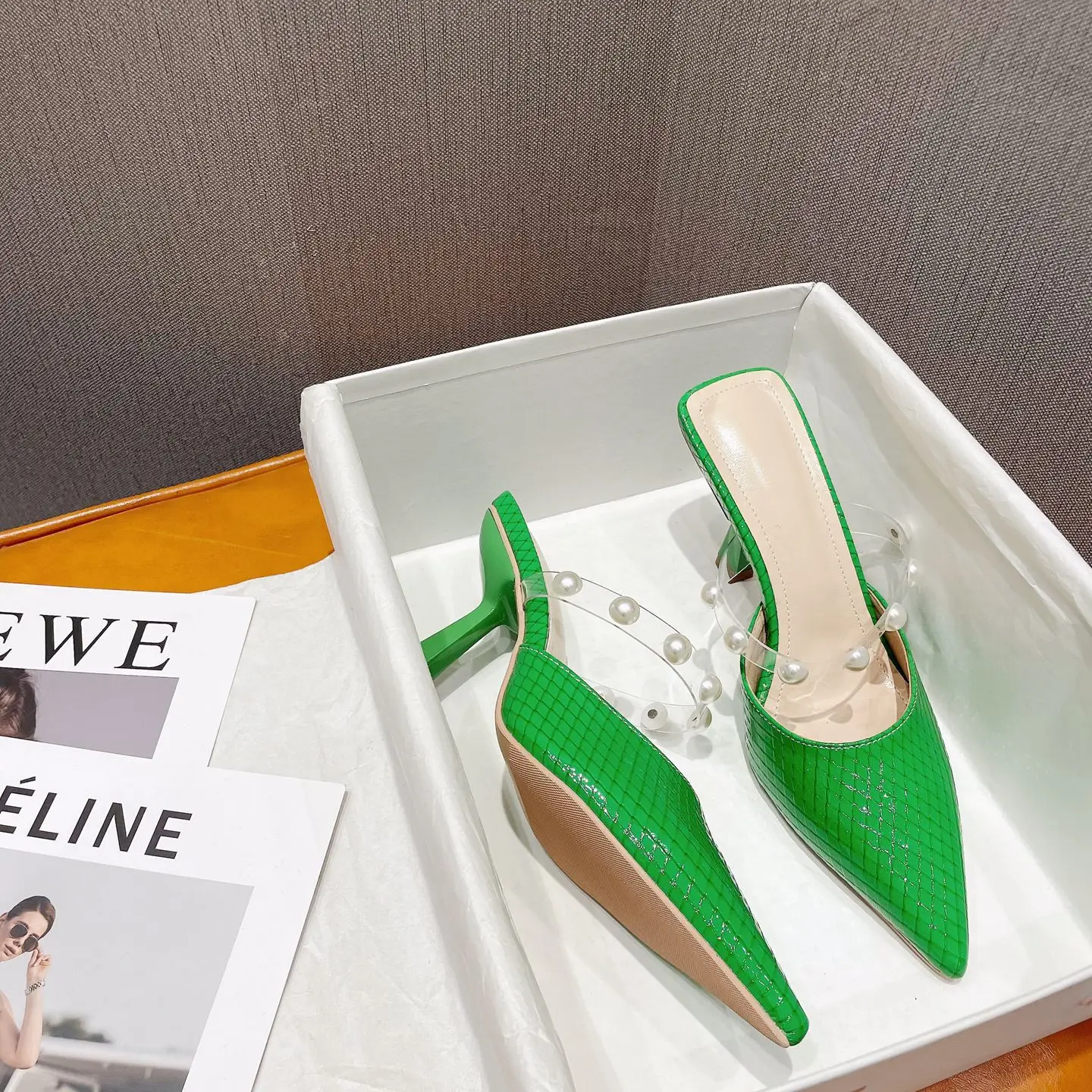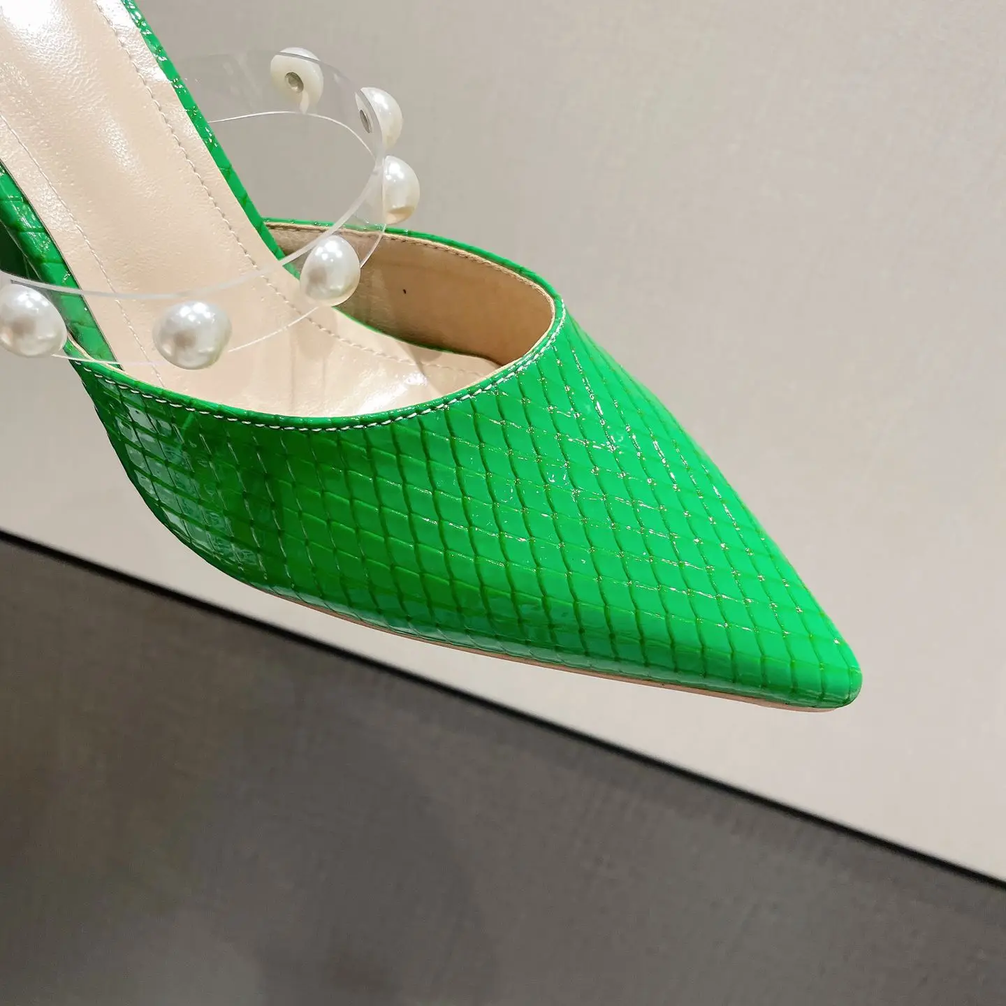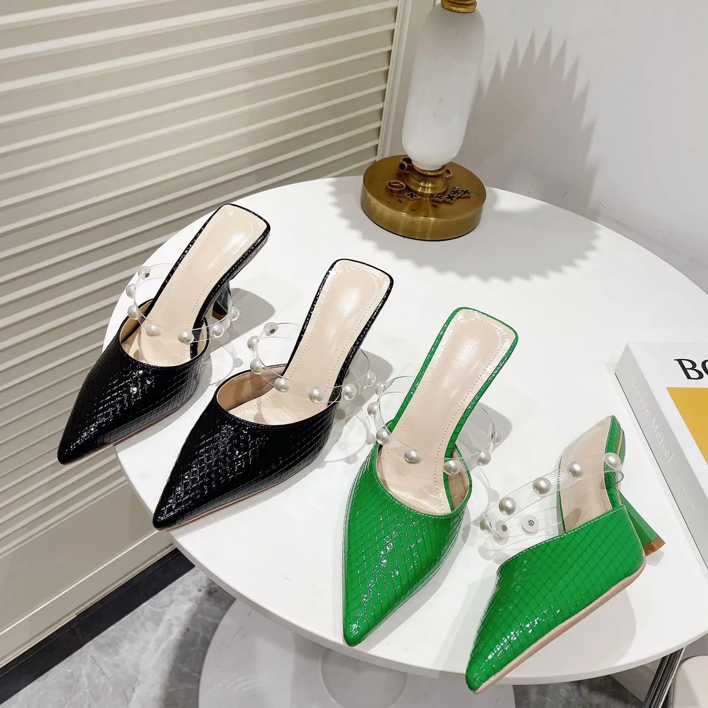 sh11174a Green color slides slippers 2023 trendy stilettoe pointed heels for ladies