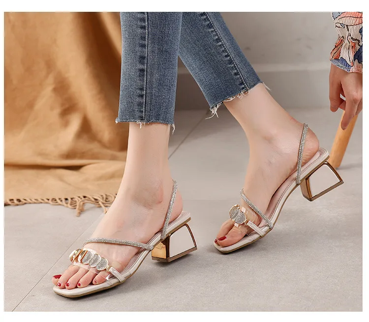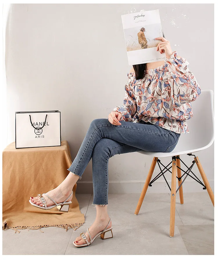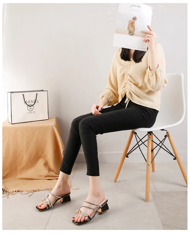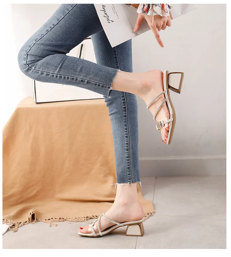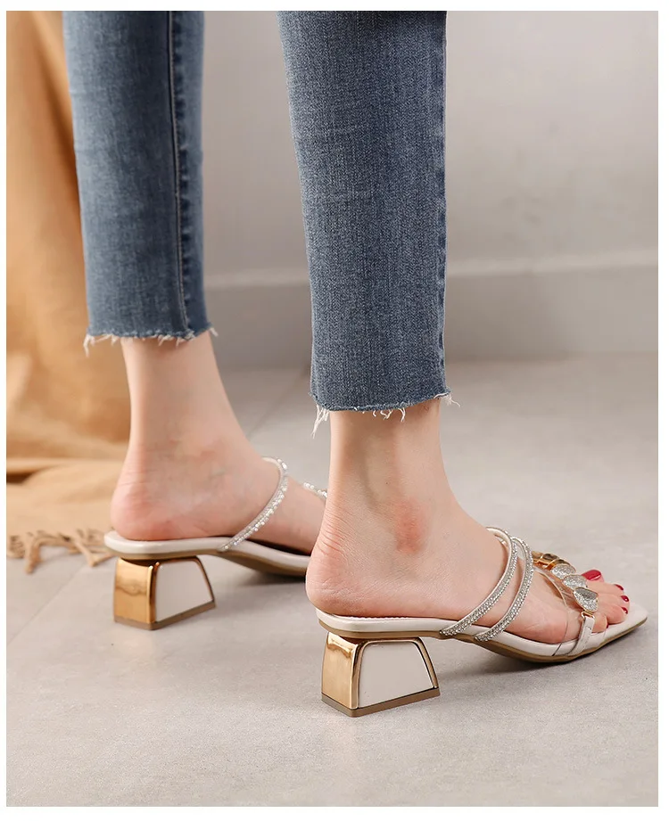 sh11517a Ladies office low heel sandals white color party short slipper heels for ladies