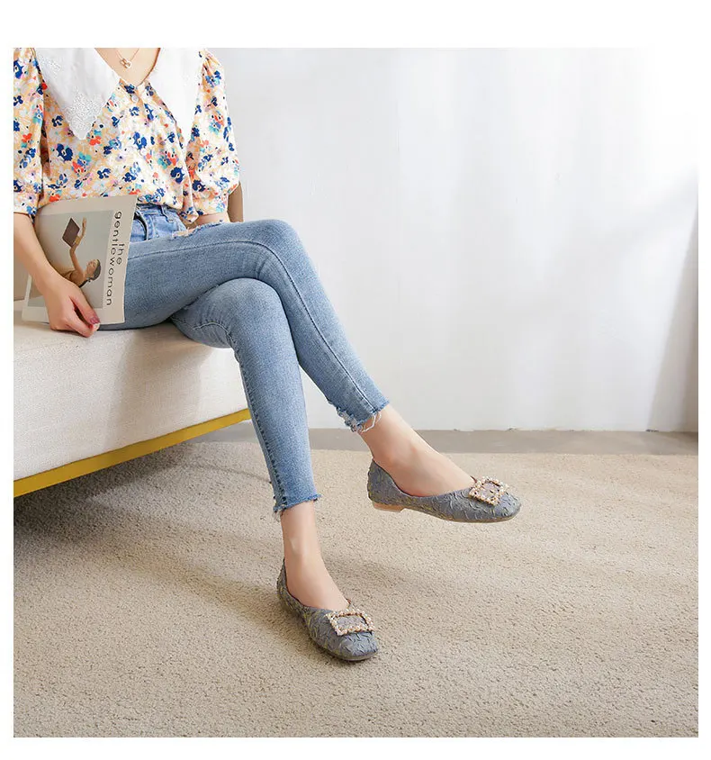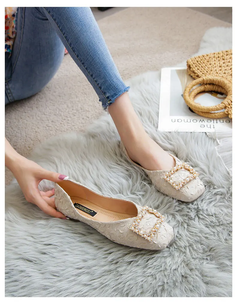 sh12280a Fashion diamond women shoes flats 2023 comfortable office ladies square toe slip on driving shoes