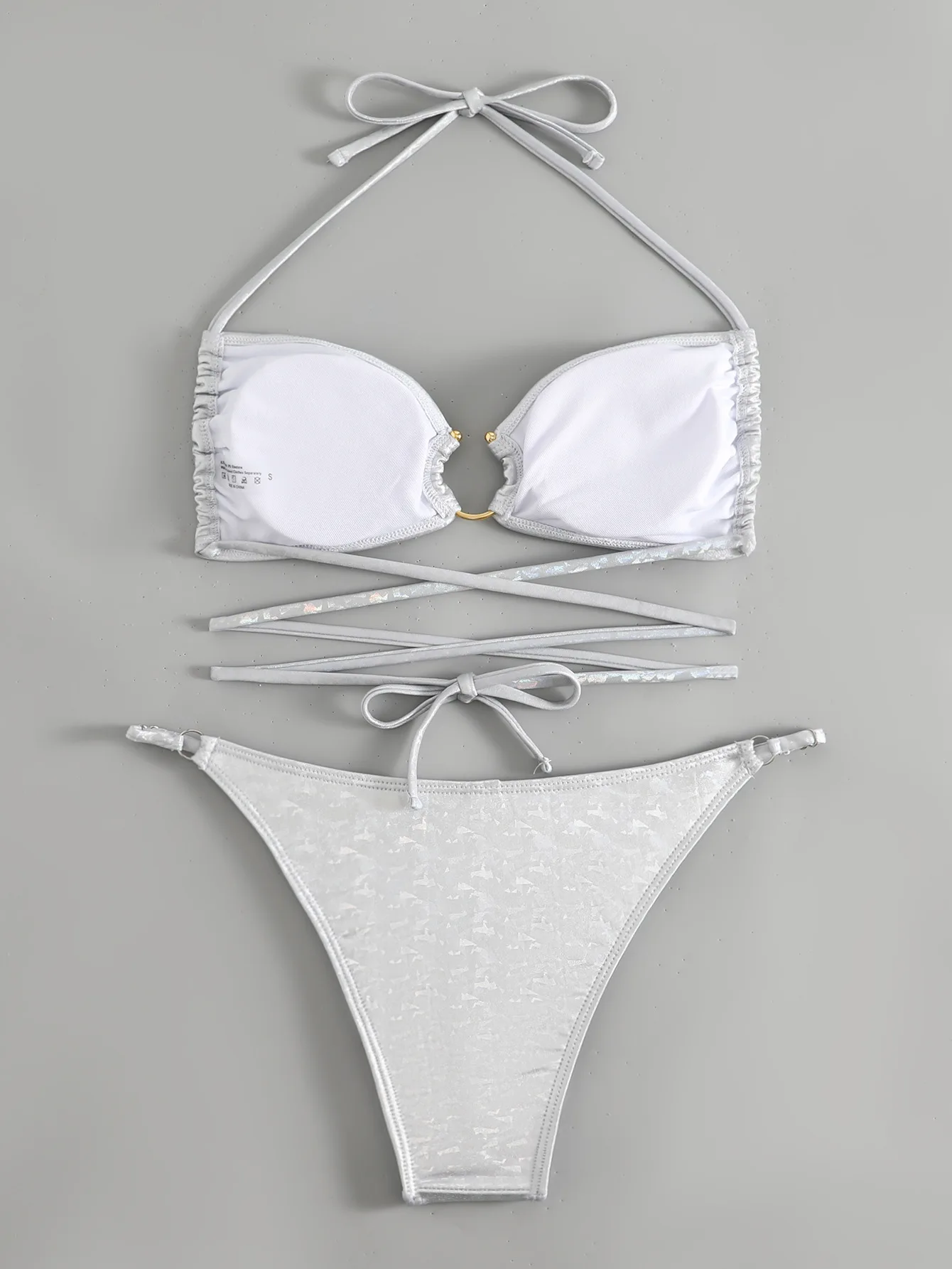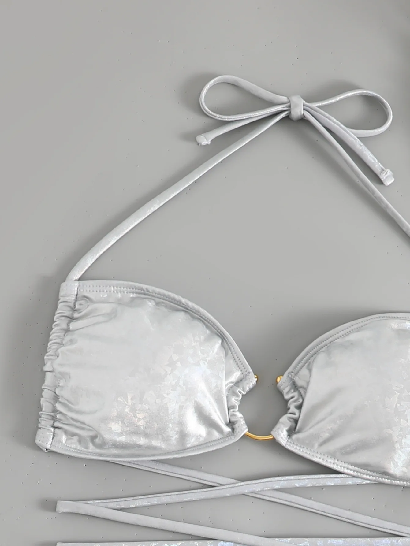 Shiny sequin fabric bandage swimsuit two pieces bikini ring linked swimwear sexy women push up padded bather bathing suit swim