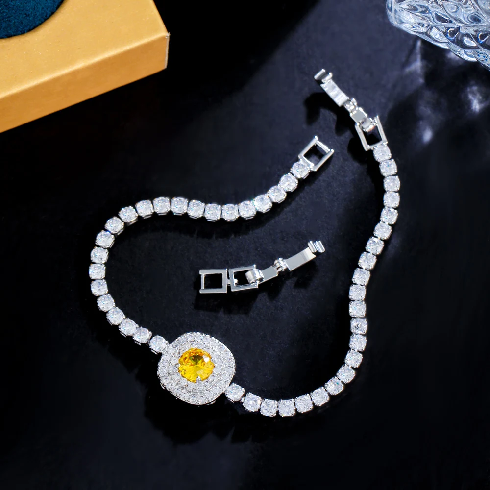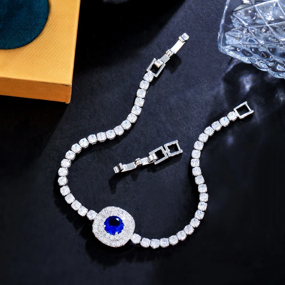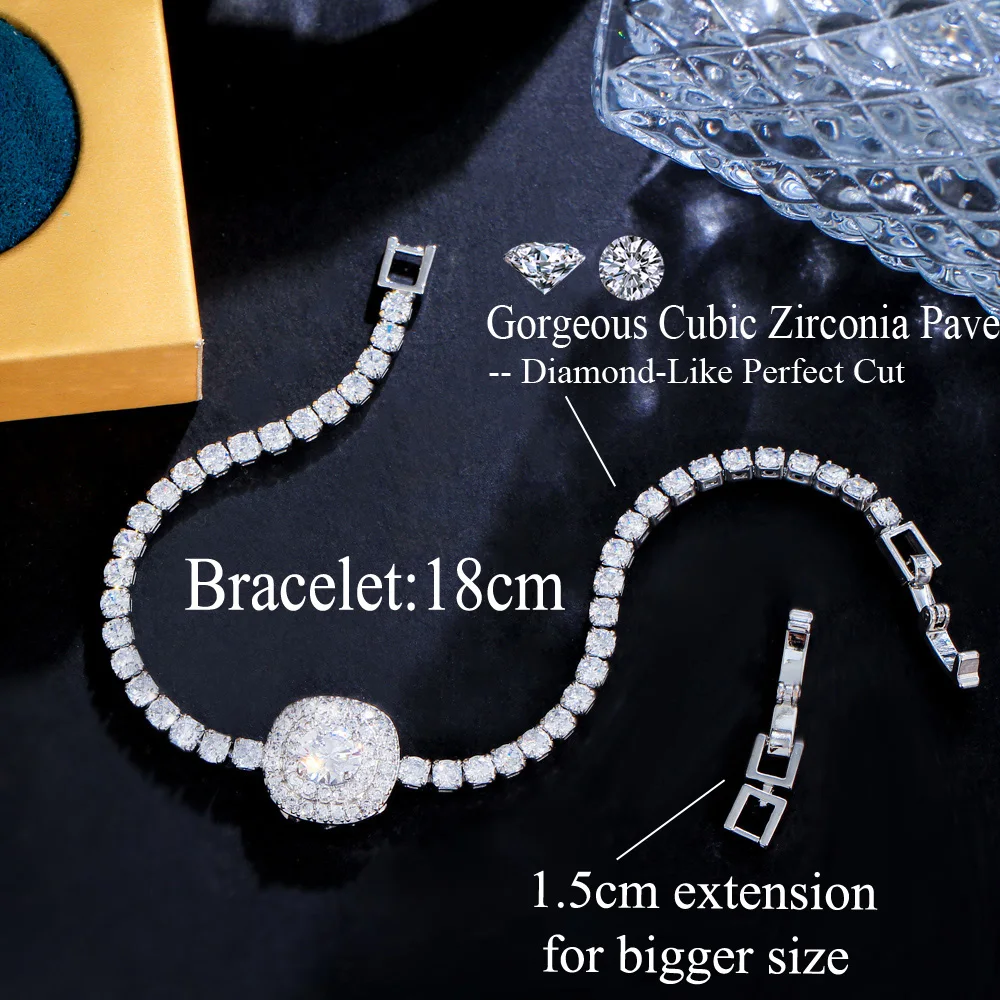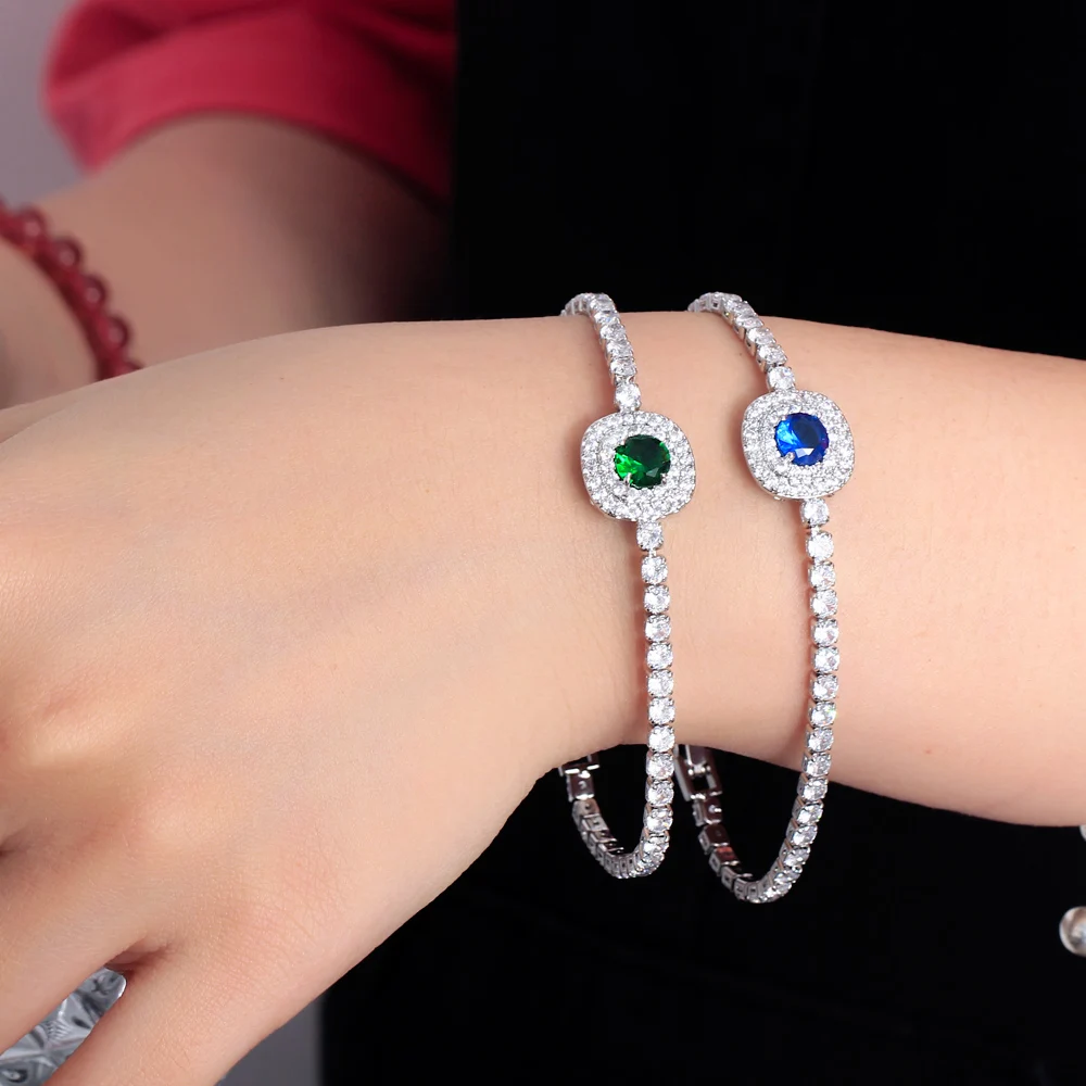 Shiny Top Square Green Blue Cubic Zirconia CZ Crystal Tennis Chain Link Women Party Engagement Bracelets Jewelry Gift