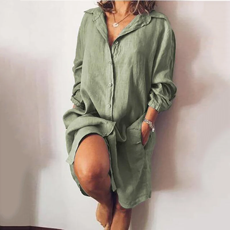 Shirt Dress for Women Linen Cotton 2023 Spring Summer Casual Vintage Clothing Vintage Loose Knee Length Dresses