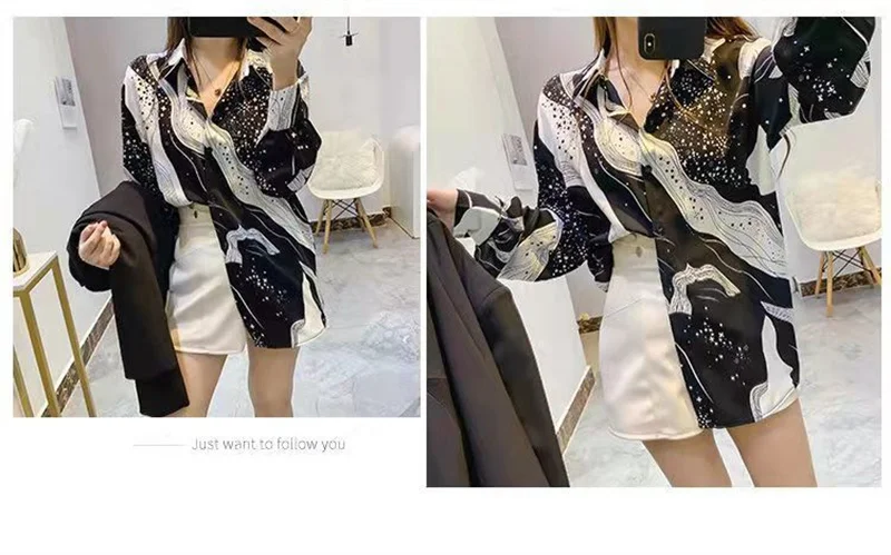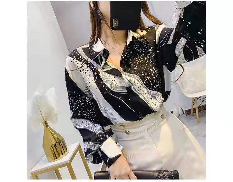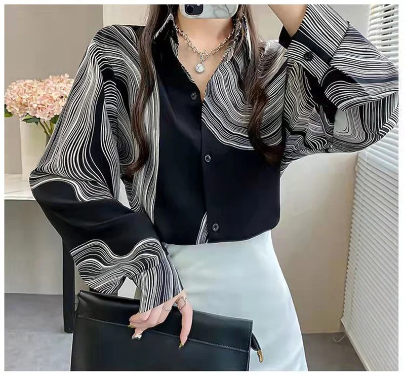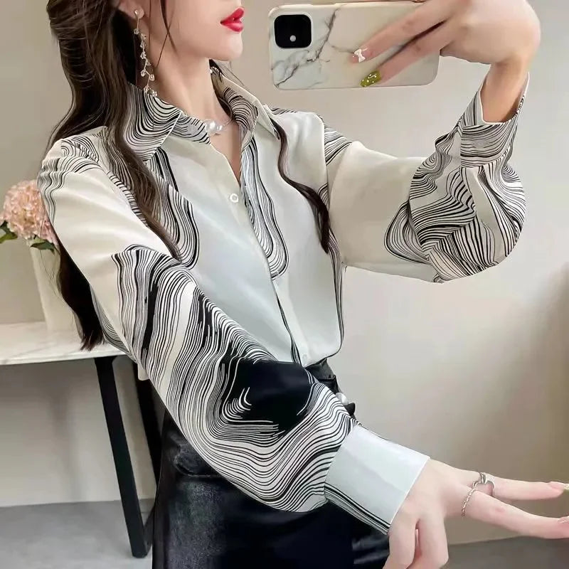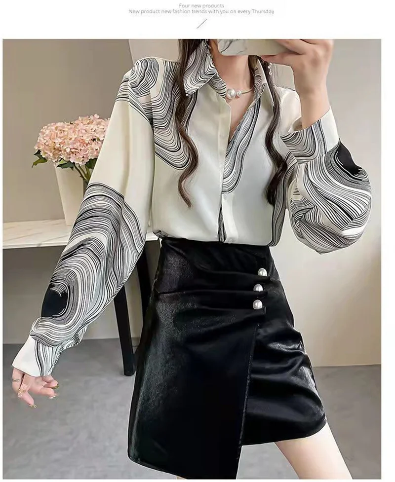 Shirt Women's Design Sense Niche Long-Sleeved Blousers 2025 Spring And Autumn Korean Retro Buttton Chiffon Shirt Top Printed 102
