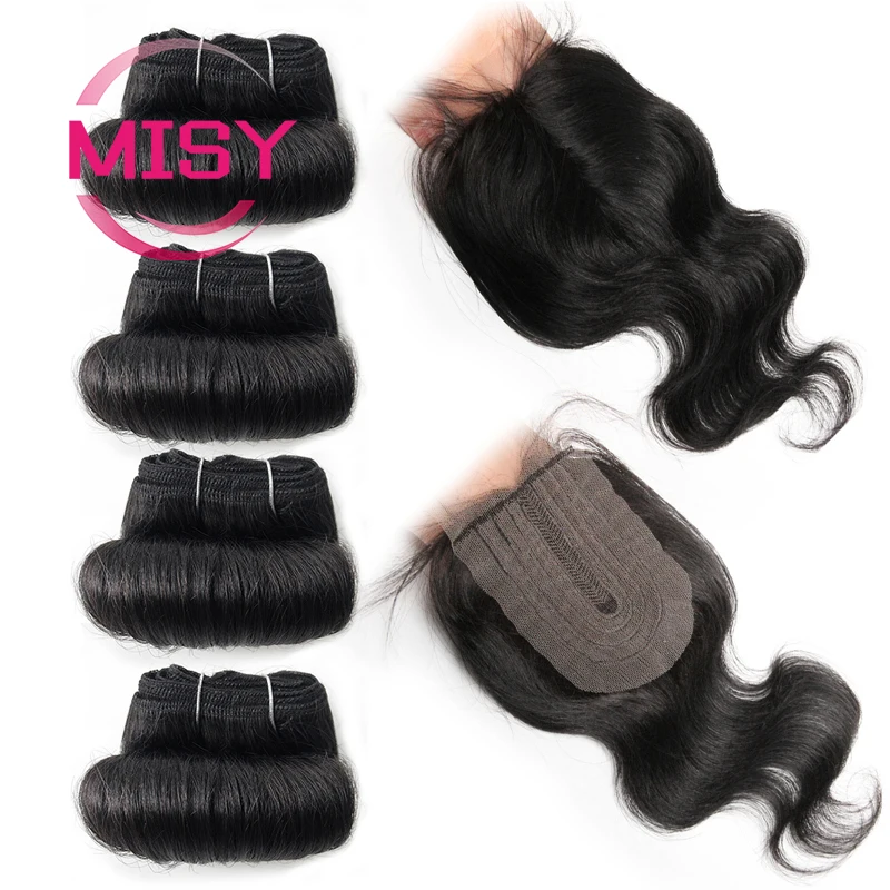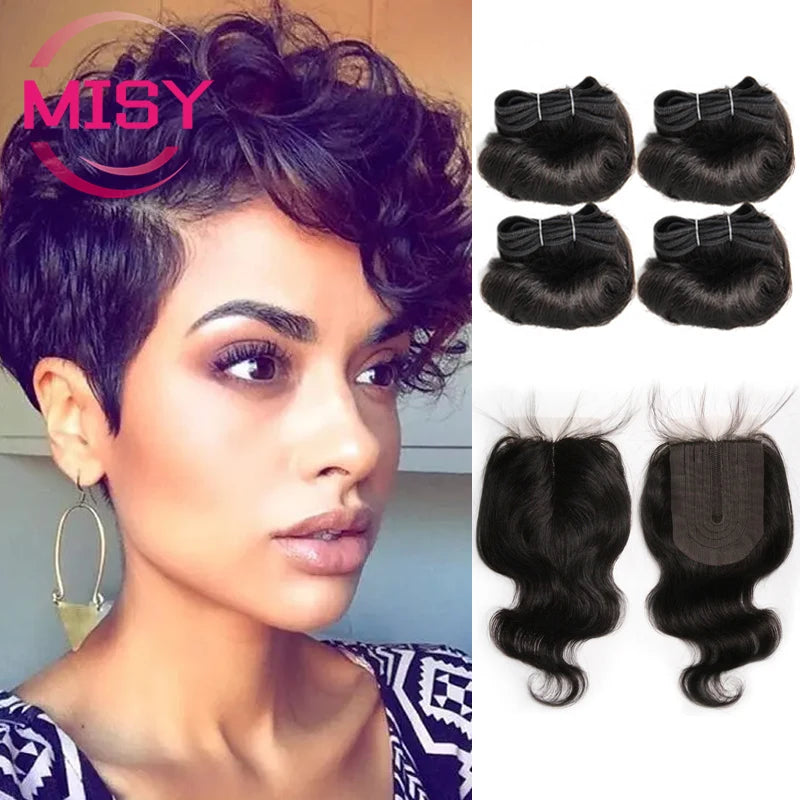 Short Curly Human Hair Bundles With Closure Brazilian Natural Hair Bundles With Closure 4x1 T Part Closure Non-Remy Human Hair