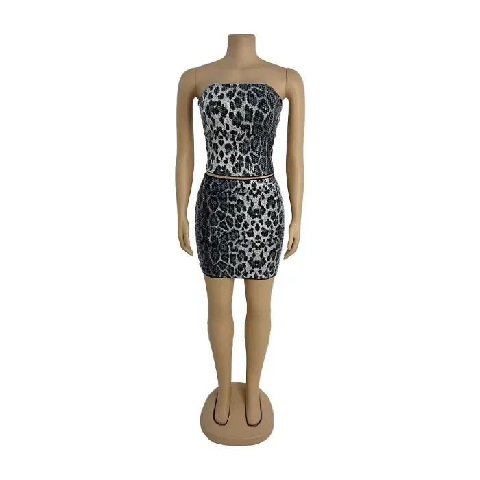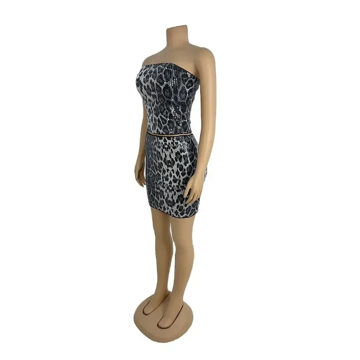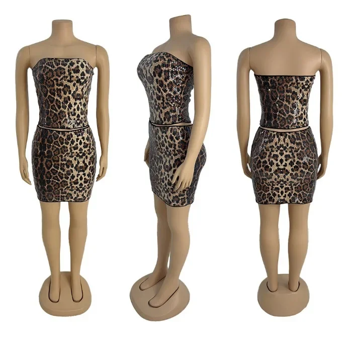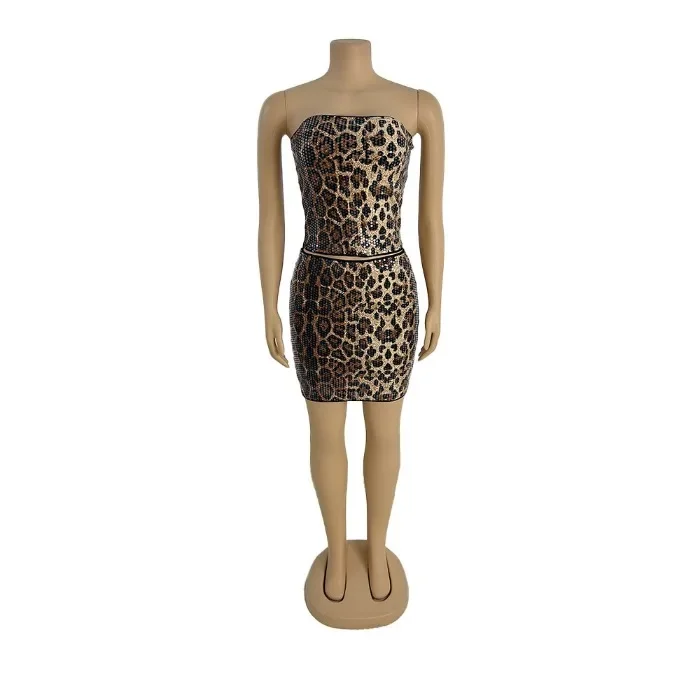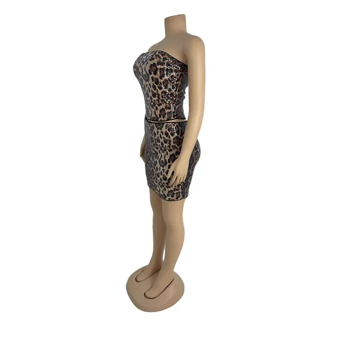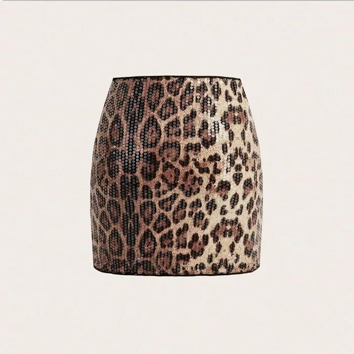 Short Dresses Woman Summer 2025 New Streetwear Fashionable and Versatile Shiny Sequin Half Skirt Leopard Print Dress Female